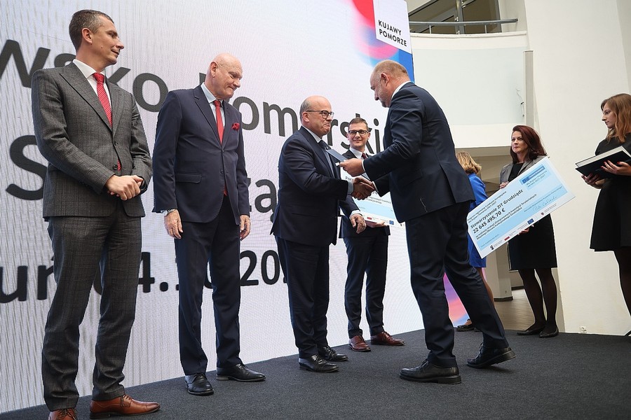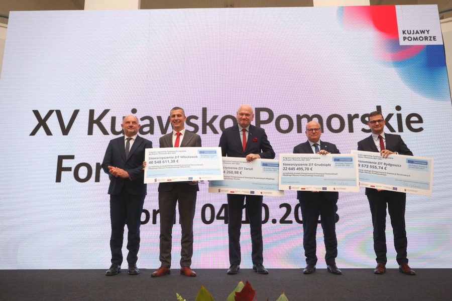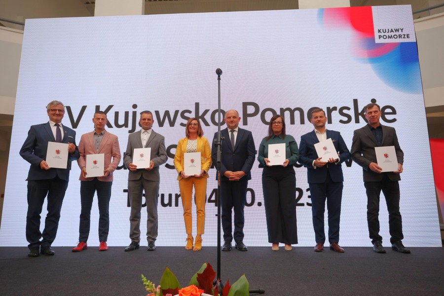 Efekty wdrażania unijnej polityki spójności 2014-2020 oraz założenia i pierwsze konkursy w ramach naszego nowego programu regionalnego 2021-2027 omówił dyrektor Departament Zarządzania Funduszami Europejskimi dla Kujaw i Pomorza w Urzędzie Marszałkowskim Rafał Pietrucień. Przedstawiciele osiemnastu partnerstw współrealizujących z samorządem województwa dedykowaną poszczególnym obszarom regionu politykę terytorialną – związków ZIT i OPPT, czyli obszarów prowadzenia polityki terytorialnej – odebrali zaświadczenia o alokacji środków w ramach Funduszy Europejskich dla Kujaw i Pomorza (FEdKP) 2021-2027.
