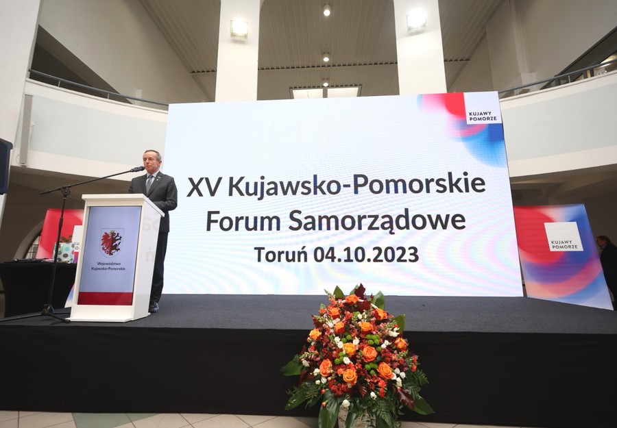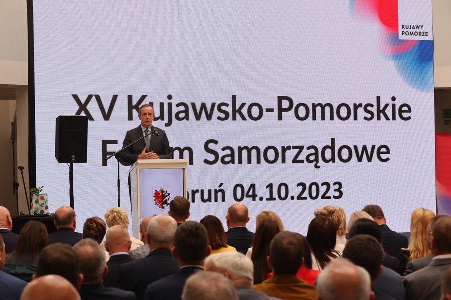 W Toruniu odbyło się w środę (4 października) posiedzenie Forum Samorządowego Województwa Kujawsko-Pomorskiego. Spotkanie reprezentantów samorządów terytorialnych wszystkich szczebli z całego regionu otworzył marszałek Piotr Całbecki. Wśród gości byli m.in. marszałek Senatu Tomasz Grodzki i poseł na Sejm Władysław Kosiniak-Kamysz. Samorząd województwa reprezentowali również przewodnicząca sejmiku województwa Elżbieta Piniewska, wicemarszałek województwa Zbigniew Sosnowski, wiceprzewodnicząca sejmiku województwa Agnieszka Kłopotek i radna Katarzyna Lubańska. Zdjęcia do pobrania