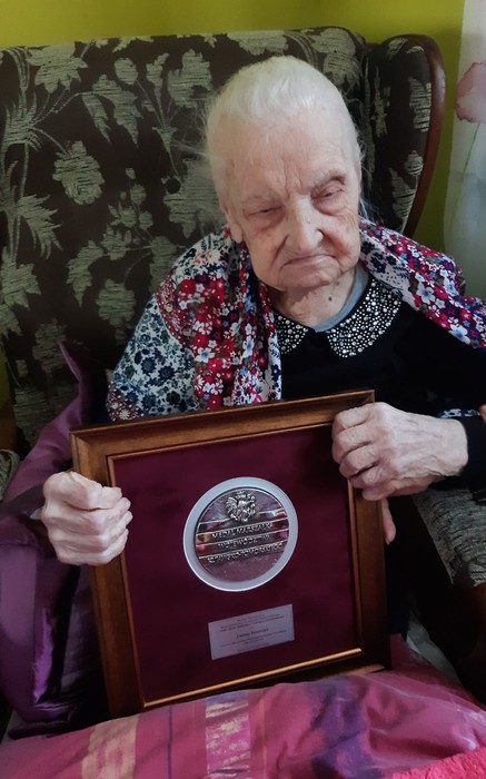 Marszałkowski medal otrzymała również pani Joanna Wrutniak. Pochodzi z lubelszczyzny, a po wojnie już na stałe związała się z Kujawami i Pomorzem. Wówczas wraz z mężem zamieszkała w Dużej Cerkwicy w powiecie sępoleńskim. Wspólnie z małżonkiem Janem prowadziła gospodarstwo rolne. W 1986 roku przeprowadzili się do Bydgoszczy, wychowali czworo dzieci. Pani Joanna to pasjonatka ręcznych robótek, dziergania i szydełkowania. Ma dziewięcioro wnucząt i czternaścioro prawnucząt. Obecnie mieszka z córką w Bysławiu (powiat tucholski). Pełny biogram.