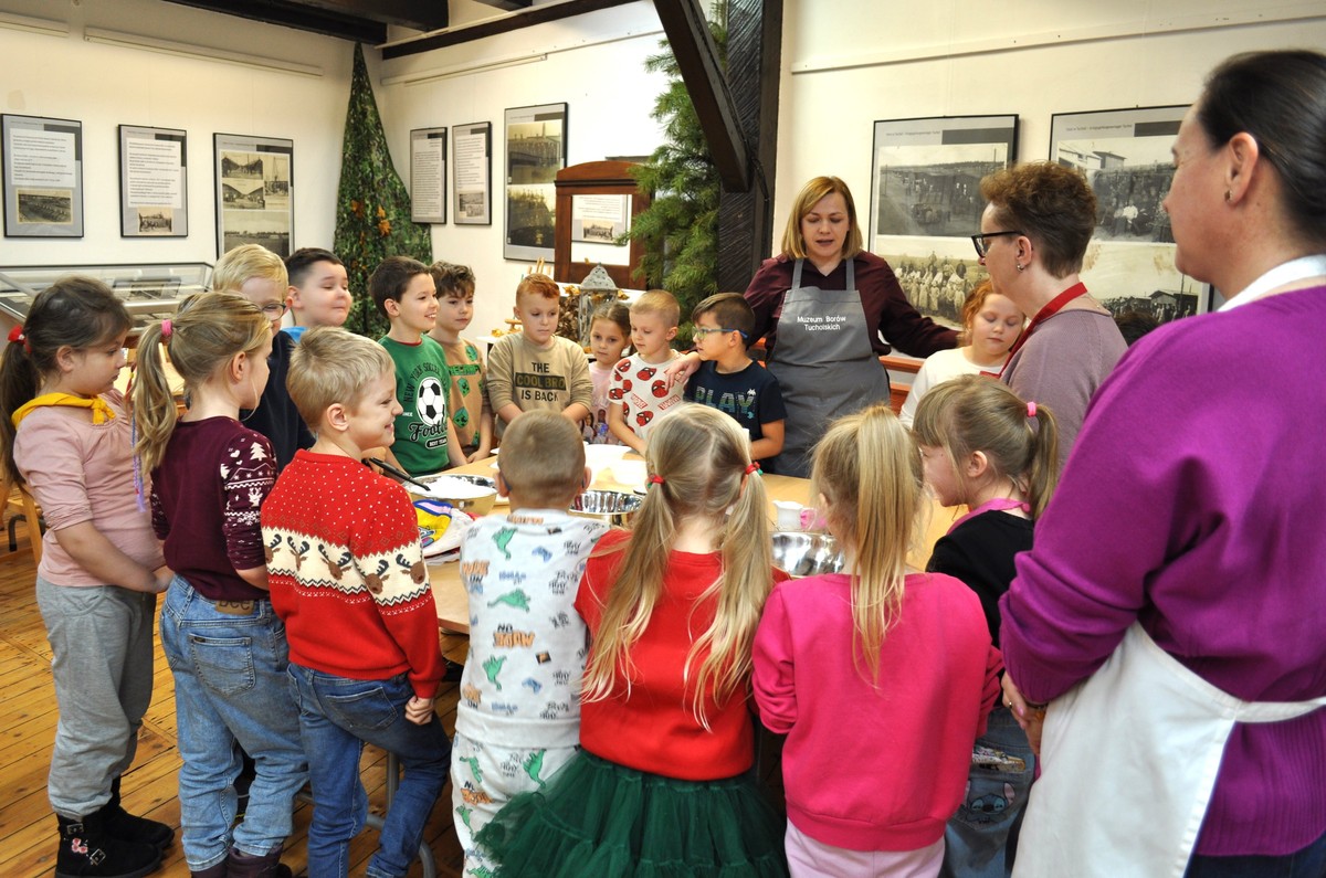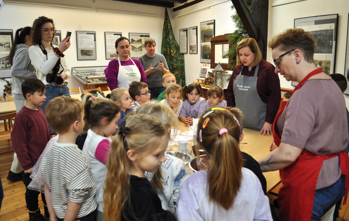 Nadchodzą Święta Bożego Narodzenia, więc najwyższa pora na pierniki! W Muzeum Borów Tucholskich dzieci zakasały rękawy i stworzyły prawdziwie świąteczne zamieszanie w kuchni — od ugniatania ciasta, przez wałkowanie i wykrawanie, aż po pieczenie.