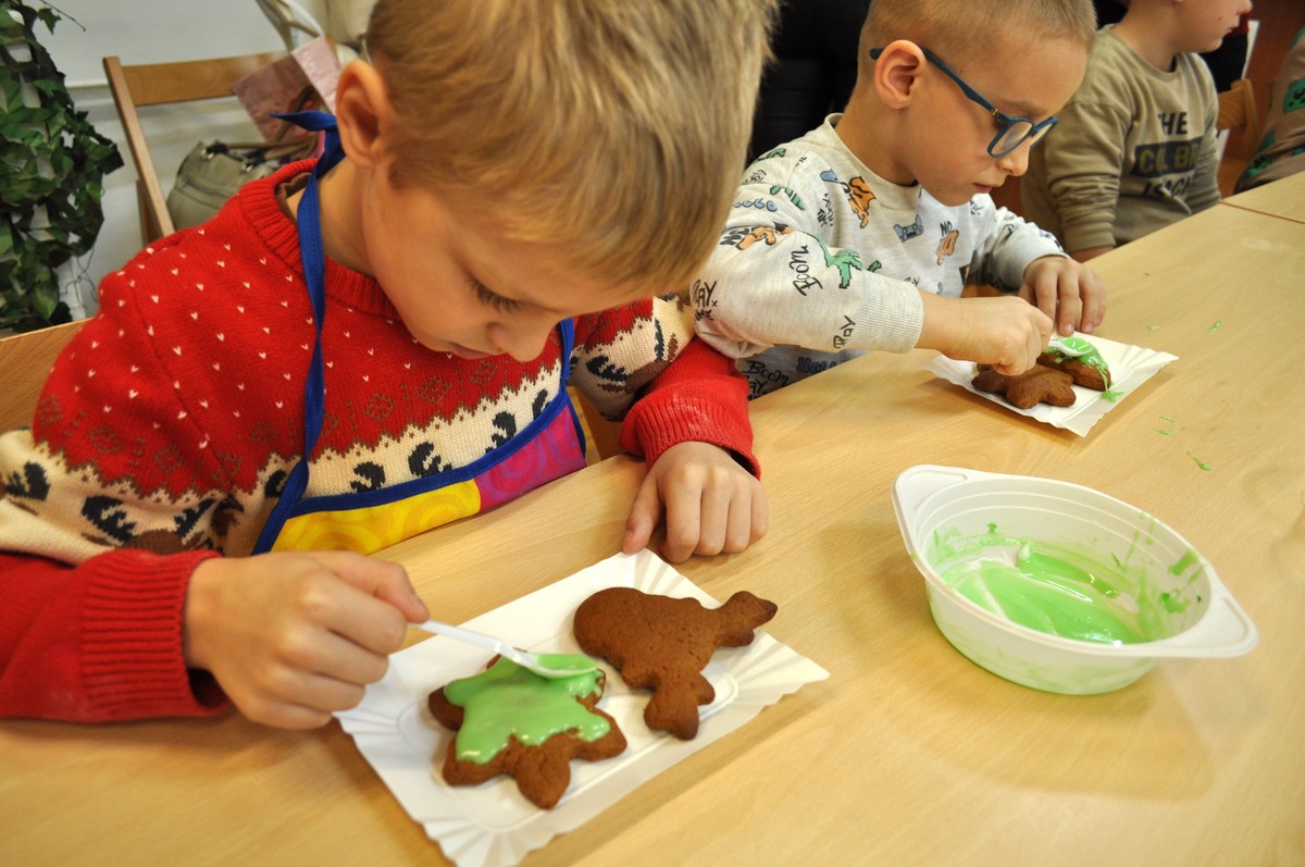 Wczorajsze warsztaty zgromadziły pierwszoklasistów, którzy przygotowywali korzenne przyprawy, mieszali kolorowe lukry i z zapałem dekorowali pierniki. Było przy tym mnóstwo radości i twórczej zabawy. Rozmawialiśmy także o świątecznych tradycjach: ubieraniu choinki, wigilijnym stole, pierwszej gwiazdce i prezentach.