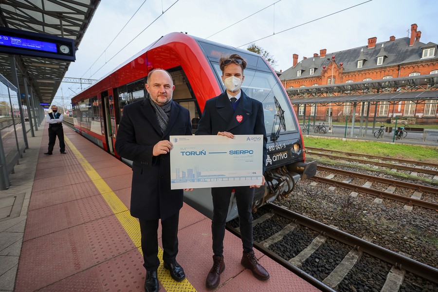 Marszałek Piotr Całbecki odgwizdał w poniedziałek (31 stycznia) odjazd pierwszego po przywróceniu tego połączenia pociągu relacji Toruń-Sierpc przez Lipno. Do końca lutego wszystkie bilety na tej trasie kosztują tylko złotówkę!