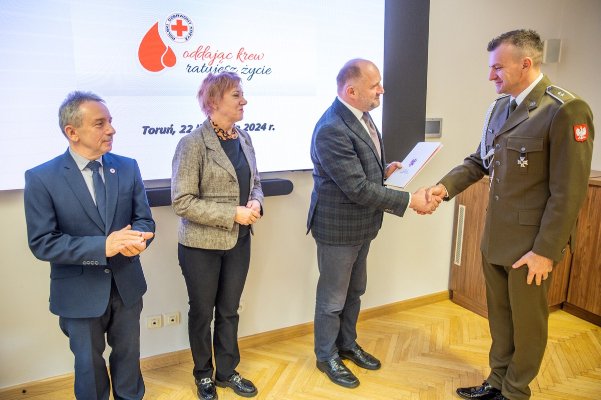 Odznaki honorowe wręczył wiceprezes Polskiego Czerwonego Krzyża Zbigniew Klawczyński i kierownik oddziału rejonowego PCK w Toruniu Ewa Zulewska-Mielcarska. Uroczystość odbyła się w ramach ogólnopolskich Dni Honorowego Krwiodawstwa PCK.