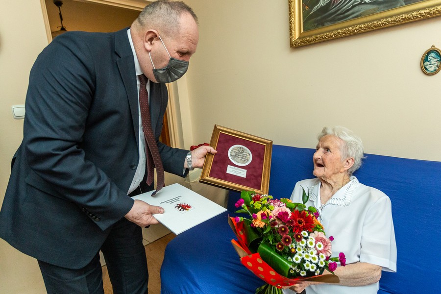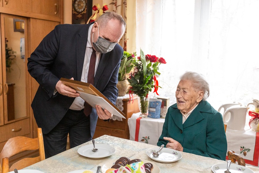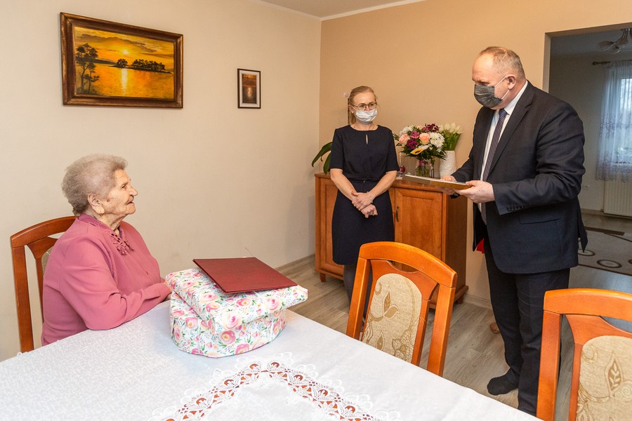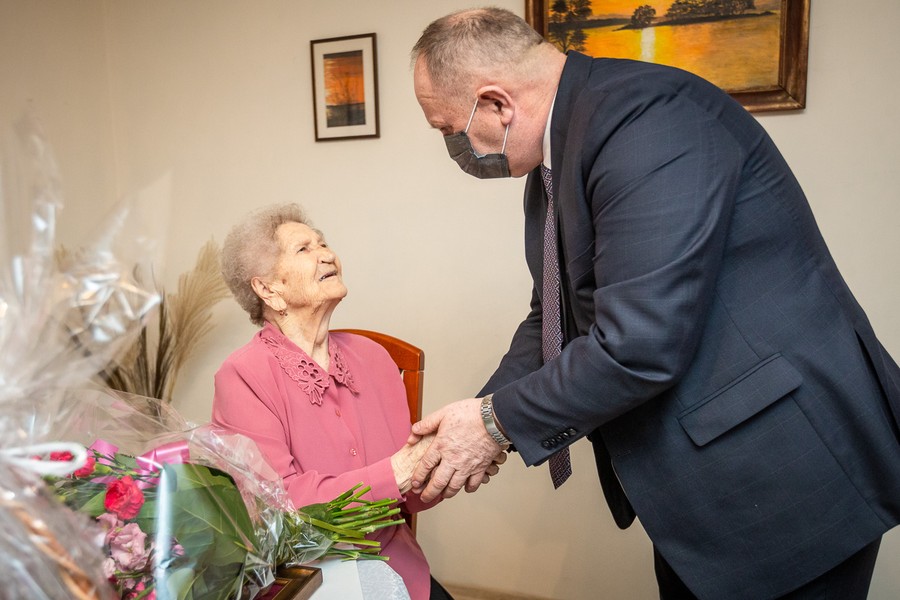 W dniu urodzin, 26 stycznia, wicemarszałek odwiedził także panią Katarzynę Szlejer. Pochodząca z Kresów Wschodnich seniorka poślubiła Tadeusza i osiedliła się w Radominie (powiat golubsko-dobrzyński). Aktywnie działała w kole gospodyń wiejskich, dbała o gospodarstwo i dom. Pani Katarzyna wychowała dziesięcioro dzieci, ma pociechę z dwadzieściorga dwojga wnuków. Pełny biogram.