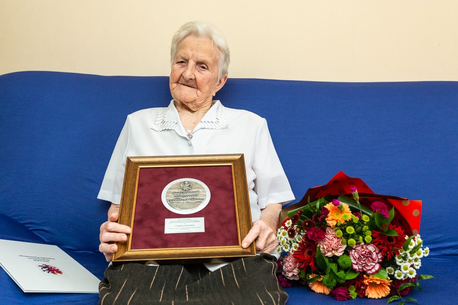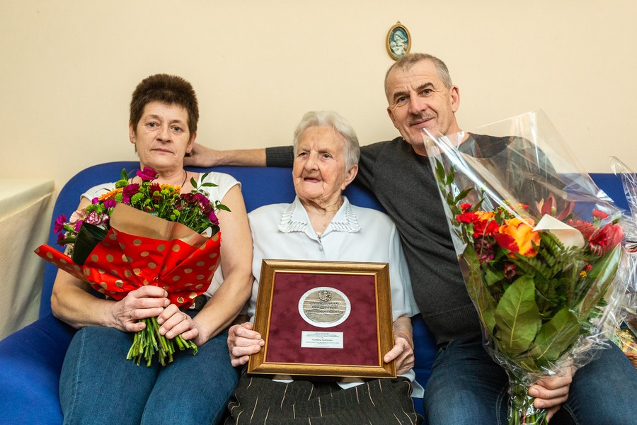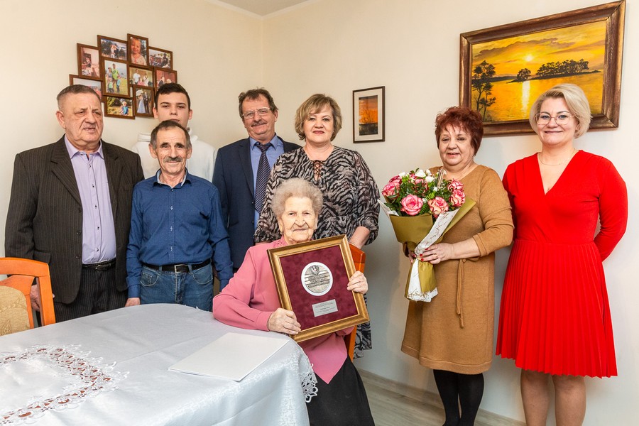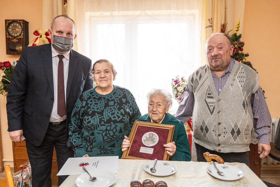 Kazimiera Janusz setne urodziny obchodziła 19 stycznia. Wychowywała się w rodzinnym gospodarstwie rolnym w zachodniej części dzisiejszej Ukrainy. W czasie wojny stanęła na ślubnym kobiercu z Janem Januszem. Małżeństwo było zmuszone uciekać z rodzinnej miejscowości z powodu ataków nacjonalistycznych bojówek. W panującym chaosie ewakuacyjnym zginął jej brat. Po wojnie rodzina osiedlała się w rożnych rejonach Polski, finalnie zamieszkała w powiecie golubsko-dobrzyńskim. Zajmowała się pracą w gospodarstwie rolnym, opieką nad trojgiem dzieci, a później także troszczyła się o wnuki i prawnuki. Pełny biogram autorstwa krewnego pani Kazimiery.