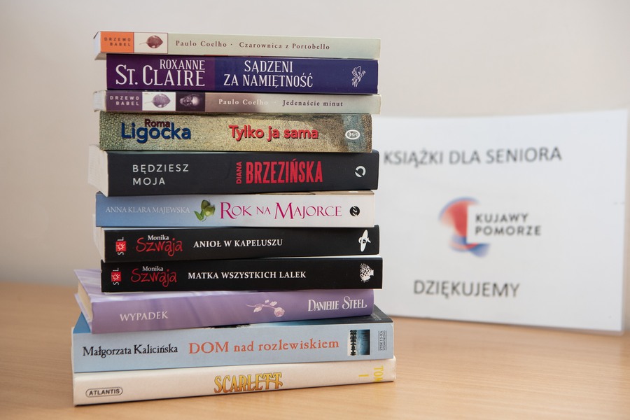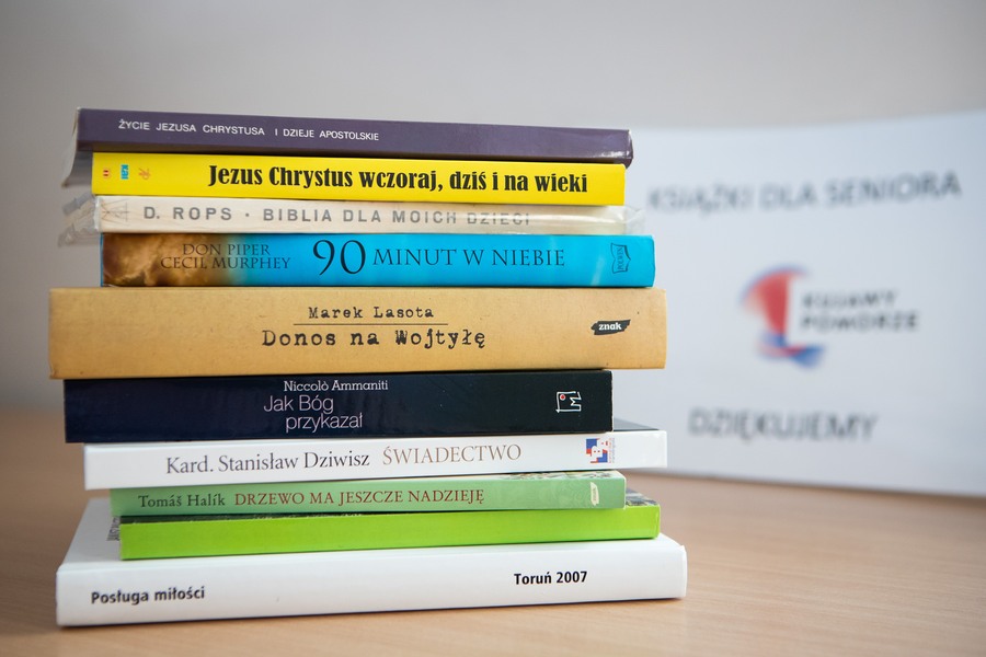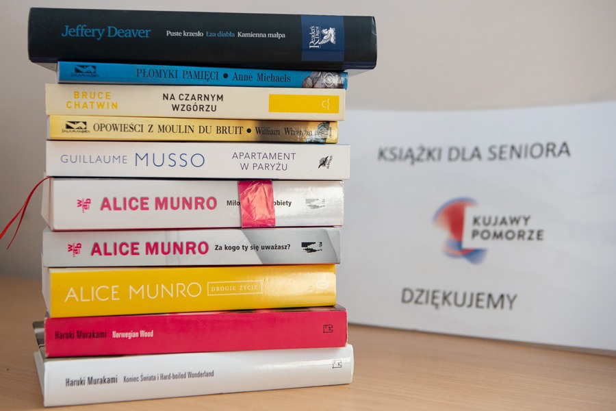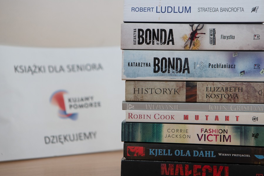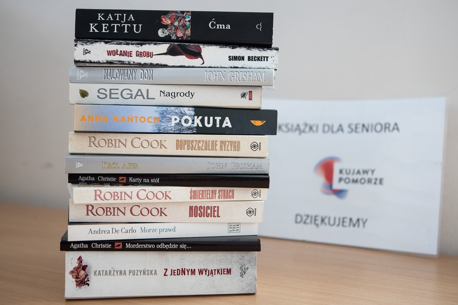 Zebraliśmy już kilka kartonów publikacji, które mogą zaspokoić różne zainteresowania i gusty literackie. Pierwsza partia trafiła do osiemdziesięciorga starszych osób, podopiecznych powstałych ze wsparciem z naszego Regionalnego Programu Operacyjnego dziennych domów opieki w Górznie (powiat brodnicki) i Przysieku (powiat toruński). Obecnie przygotowujemy książki, które trafią do domów kombatantów w regionie.
