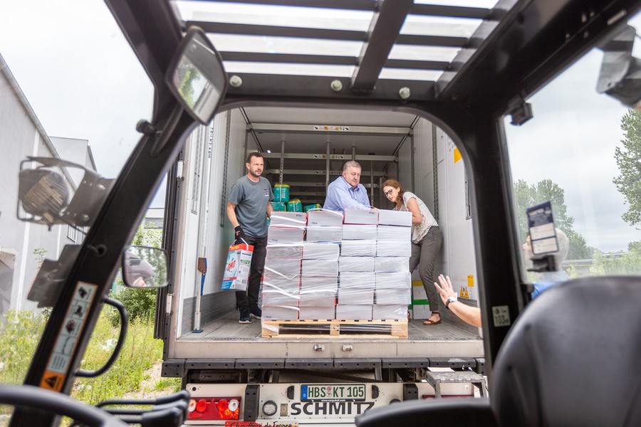 W piątek (8 lipca) do Torunia dotarł transport pomocy humanitarnej dla Ukraińców zorganizowany przez niemiecki land Saksonia-Anhalt i jego partnerów Agrarmarketinggesellschaft Sachsen-Anhalt mbH i Auslandsgesellschaft Sachsen-Anhalt e.V. Produkty trafią do przebywających w Kujawsko-Pomorskiem uchodźców wojennych oraz do Ukraińców pozostających w Obwodzie Chmielnickim i Obwodzie Żytomierskim. Przy rozładunku obecny był członek zarządu województwa Sławomir Kopyść.