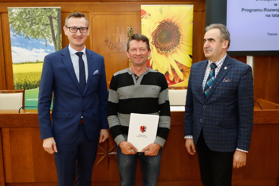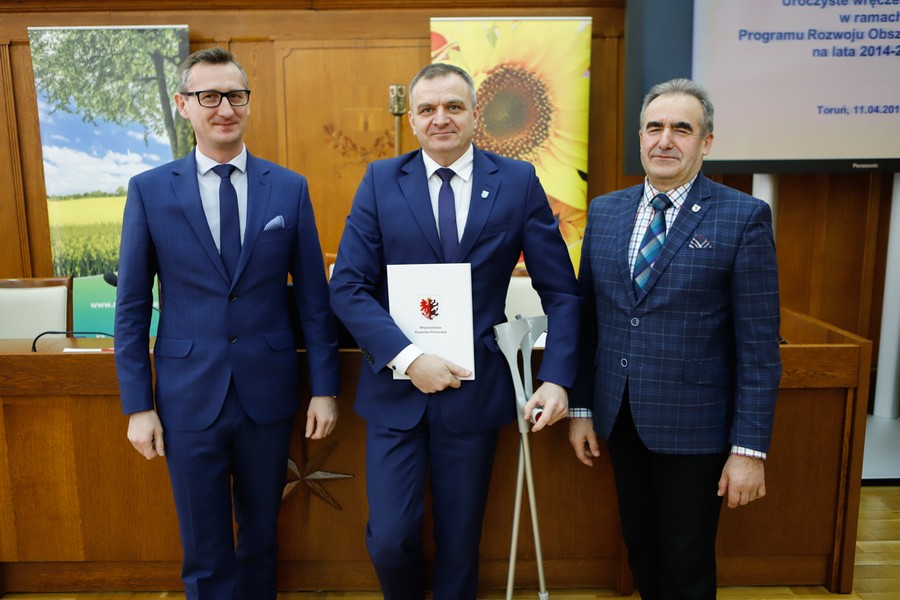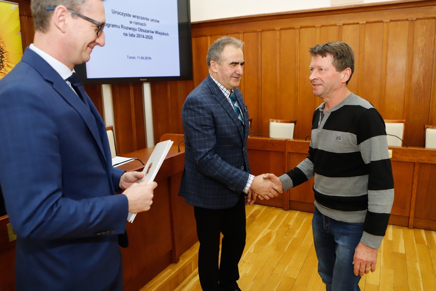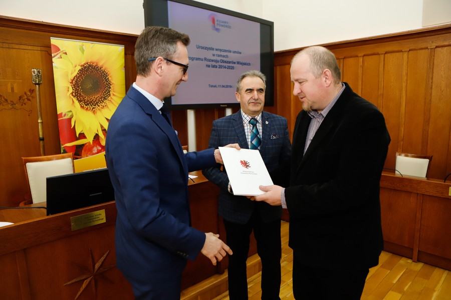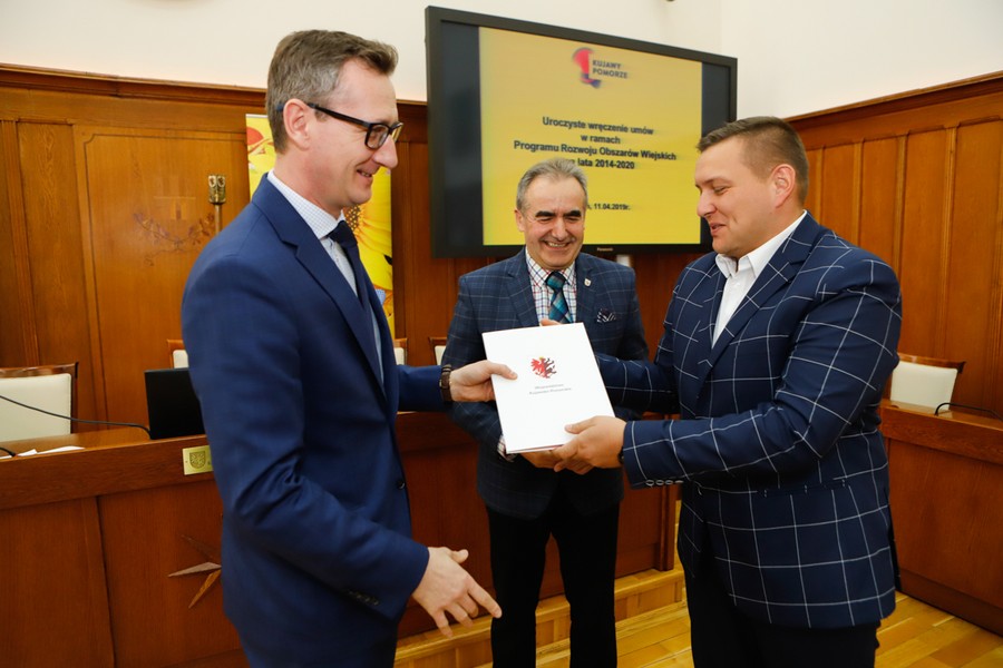 Rozbudowa dróg gminnych, budowa targowisk i miejsc rekreacyjno-sportowych, wsparcie na działalność gospodarczą – w czwartek (11 kwietnia) w Urzędzie Marszałkowskim odbyło się podpisanie umów na dofinansowanie 13 projektów w ramach Programu Rozwoju Obszarów Wiejskich. Łączna kwota wsparcia wynosi 3,3 miliona złotych. Umowy wręczyli przewodniczący sejmiku województwa Ryszard Bober i wicemarszałek Dariusz Kurzawa.