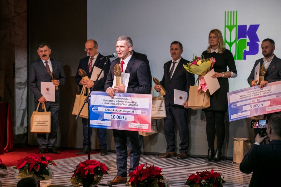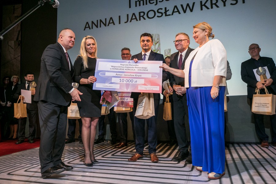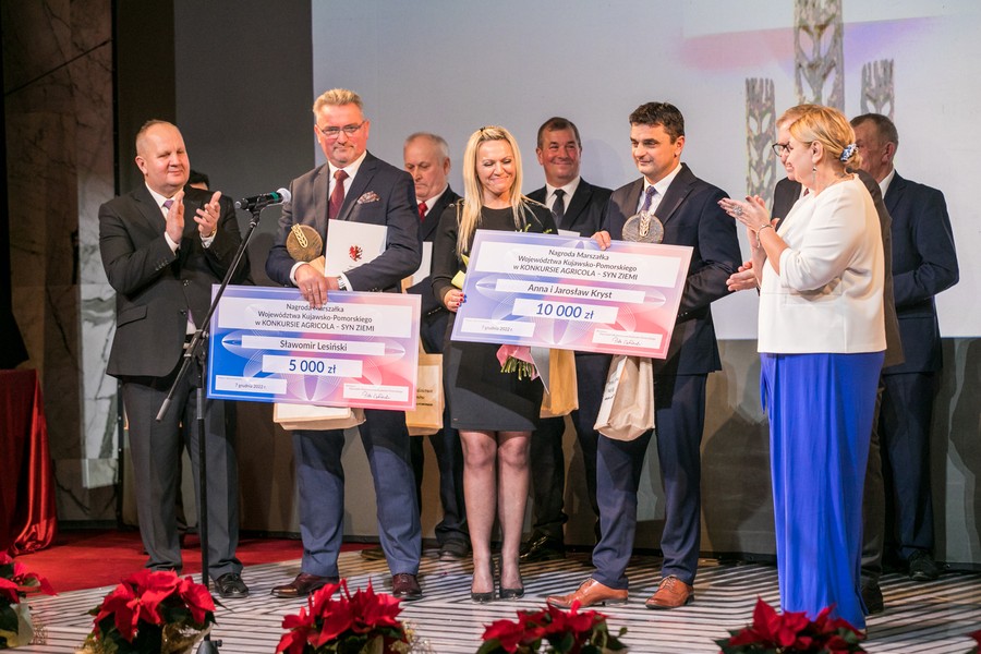 Anna i Jarosław Kryst ze Złotopola w powiecie lipnowskim, Cezary Grzegórski z Brzeźna w powiecie aleksandrowskim i Ewelina Sulińska z Czernikówka (powiat toruński) są tegorocznymi laureatami konkursu o Nagrodę Marszałka Województwa Agricola-Syn Ziemi. Podczas środowej (7 grudnia) gali w Teatrze Horzycy okolicznościowe statuetki najlepsi odebrali z rąk przewodniczącej sejmiku województwa Elżbiety Piniewskiej i wicemarszałka województwa Zbigniewa Sosnowskiego. Zdjęcia do pobrania
