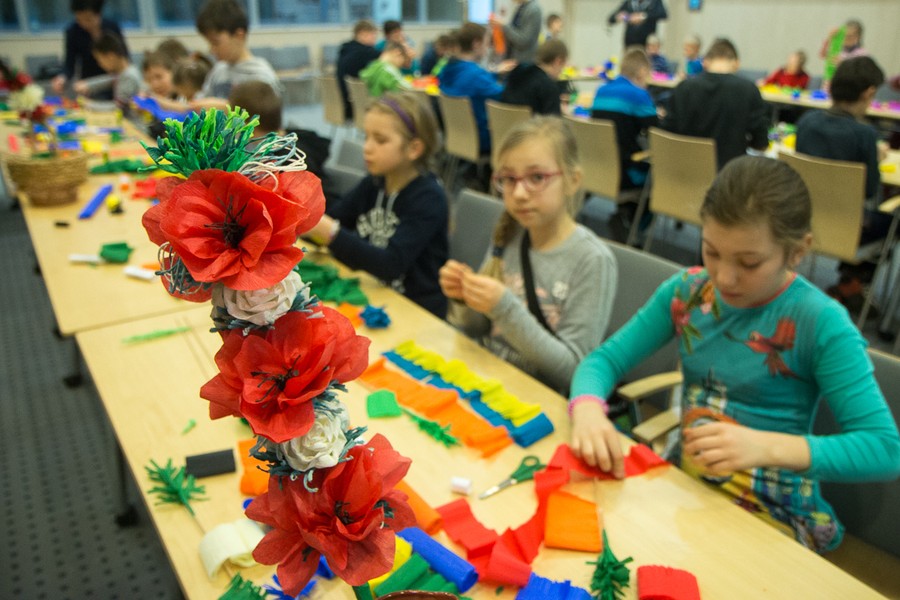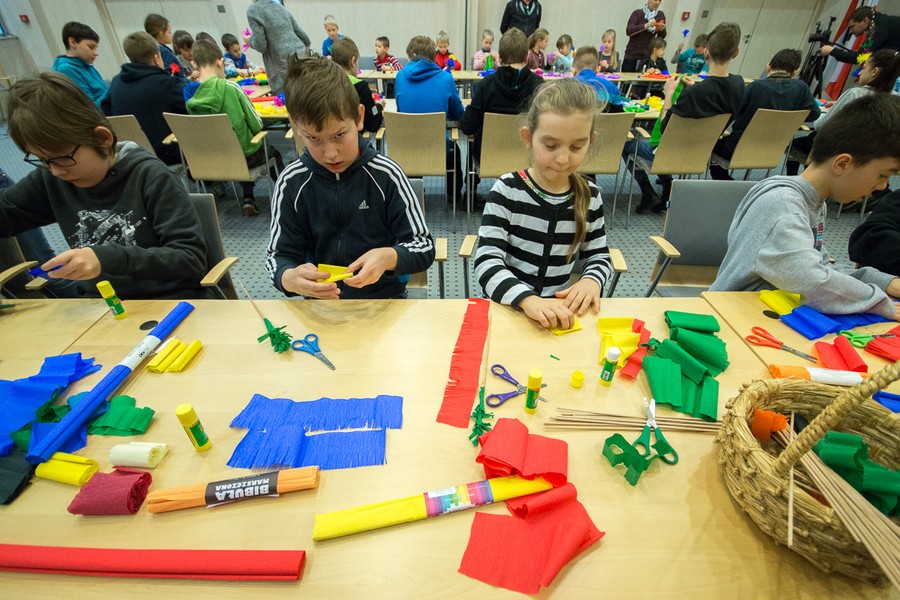 W atmosferę Świąt Wielkanocnych wprowadzają nas imprezy i wydarzenia organizowane przez Urząd Marszałkowski oraz wojewódzkie jednostki kultury. W zeszłym tygodniu we wtorek (15 marca) w urzędzie gościliśmy grupę uczniów ze Szkoły Podstawowej w Niewieścinie (Gmina Pruszcz, powiat świecki), którzy wyplatali palmy wielkanocne. W czwartek i piątek (17 i 18 marca) w toruńskim Muzeum Etnograficznego oraz w sobotę (19 marca) Galerii i Ośrodka Plastycznej Twórczości Dziecka odbyły się wielkanocne warsztaty plastyczne.