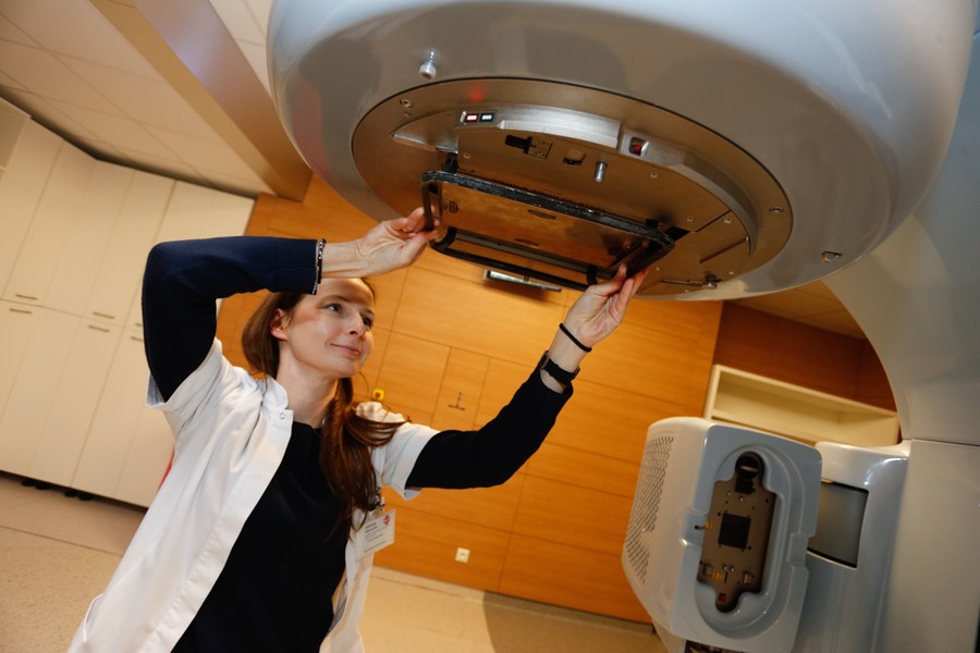 Na razie zamontowano tu jeden akcelerator. To nowe, nowoczesne urządzenie, takie samo jak te, których CO używa z Bydgoszczy. Kosztowało 7,9 mln złotych, centrum sfinansowało go samodzielnie. Drugie, podobne, trafi do Włocławka w grudniu, ale konieczny długi proces montażu i kalibrowania sprawia, że kierownictwo CO zakłada jego terapeutyczne uruchomienie dopiero wiosną. Kosztował 9,2 mln złotych, z czego 7,5 mln pochodziło z puli narodowego programu zwalczania chorób nowotworowych, którego dysponentem jest Ministerstwo Zdrowia.
