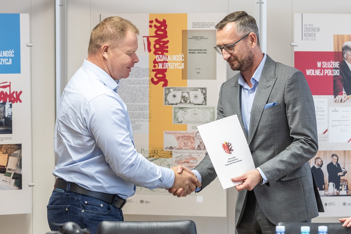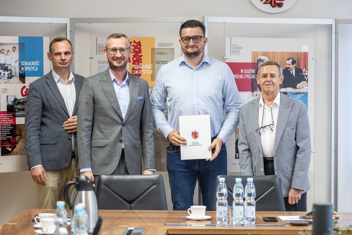 – To dopiero początek – mówił podczas spotkania odpowiedzialny za sprawy wsi i rolnictwa członek zarządu województwa Dariusz Kurzawa, odnosząc się do planowanych w najbliższym czasie konkursów o dofinansowanie tego rodzaju inwestycji w ramach naszego programu operacyjnego Fundusze Operacyjne dla Kujaw i Pomorza 2021-2027 oraz Krajowego Planu Odbudowy. Poinformował, że środki w puli tych konkursów są dedykowane zarówno rolnikom, jak i samorządom oraz lokalnym spółkom wodnym. W ceremonii przekazania umów o dofinansowanie uczestniczyli też dyrektor i wicedyrektor Departamentu Rolnictwa w Urzędzie Marszałkowskim Wiesław Czarnecki i Rafał Chruścicki.