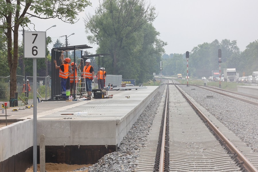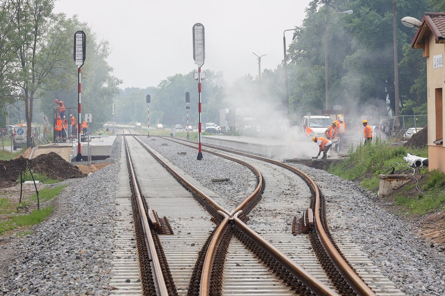Obecnie wykonawca, którym jest firma Porr Polska, prowadzi prace na przystankach w Łysomicach i Grzywnie, gdzie powstają nowe perony. Rozpoczął też prace związane z budową w nowym miejscu przystanku w Ostaszewie, gdzie pociągi będą się zatrzymywać przy 125-metrowym peronie.