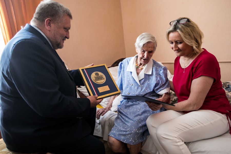 Bronisława Zielińska z domu Dębczyńska urodziła się 29 lipca 1918 r. w rodzinie wielodzietnej, miała dziewięcioro rodzeństwa. Od młodych lat ciężko pracowała, w gospodarstwie rodziców, a potem wraz z mężem, z przerwą na czasy II wojny światowej, gdzie została wywieziona na roboty przymusowe w Niemczech. Wychowała jedną córkę i doczekała się trojga wnucząt, siedmiorga prawnucząt i trojga praprawnucząt. Sama mówi: „Ja się żadnej pracy nie bałam, w każdej w której była zawsze dawałam sobie radę, czuję się bardzo kochaną przez wszystkich w mojej rodzinie i ja też ich kocham, u nas w rodzinie nikt nigdy się ze sobą nie kłóci, tylko rozmawia”. Receptą pani Bronisławy na długowieczność jest dużo uśmiechu, radości i dużo ruchu na świeżym powietrzu wraz z pracą.