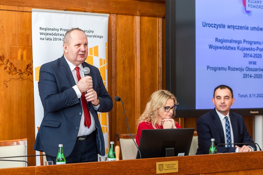 Podczas wtorkowej ceremonii w Urzędzie Marszałkowskim umowy o dofinansowanie odebrali też prezydent Grudziądza Maciej Glamowski i przedstawicielka samorządowych władz Rypina dyrektor Marta Jadzińska (w ramach RPO), a także beneficjenci, w liczbie 20, Programu Rozwoju Obszarów Wiejskich. Grudziądz podejmuje się rozbudowy i modernizacji stanicy żeglarskiej nad Jeziorem Rudnickim za ponad 6 mln złotych. Rypin rozpoczął realizację projektu „Szkoła marzeń” (za ponad milion złotych), w ramach którego prowadzone są zajęcia dodatkowe w szkołach i szkolenia dla nauczycieli. Umowy PROW, na łącznie ponad 2 mln złotych, dotyczą dotacji na rozpoczęcie działalności biznesowej oraz środków na niewielkie inwestycje w gminach (infrastruktura rekreacyjna i turystyczna, przestrzeń publiczna) i projekty promocyjne lokalnych grup działania (LGD-ów).