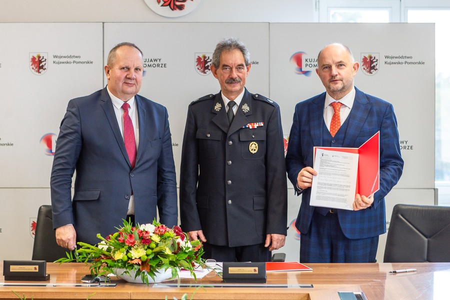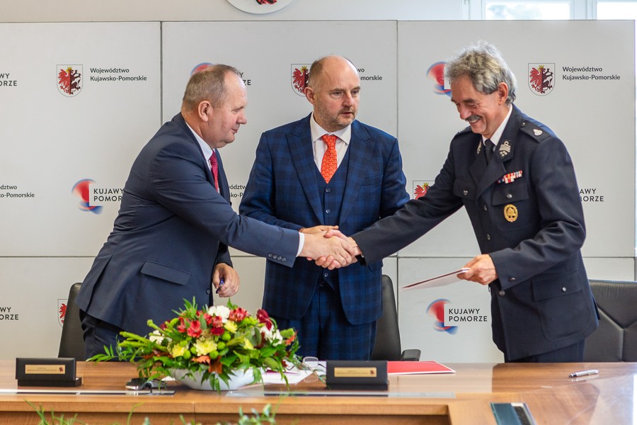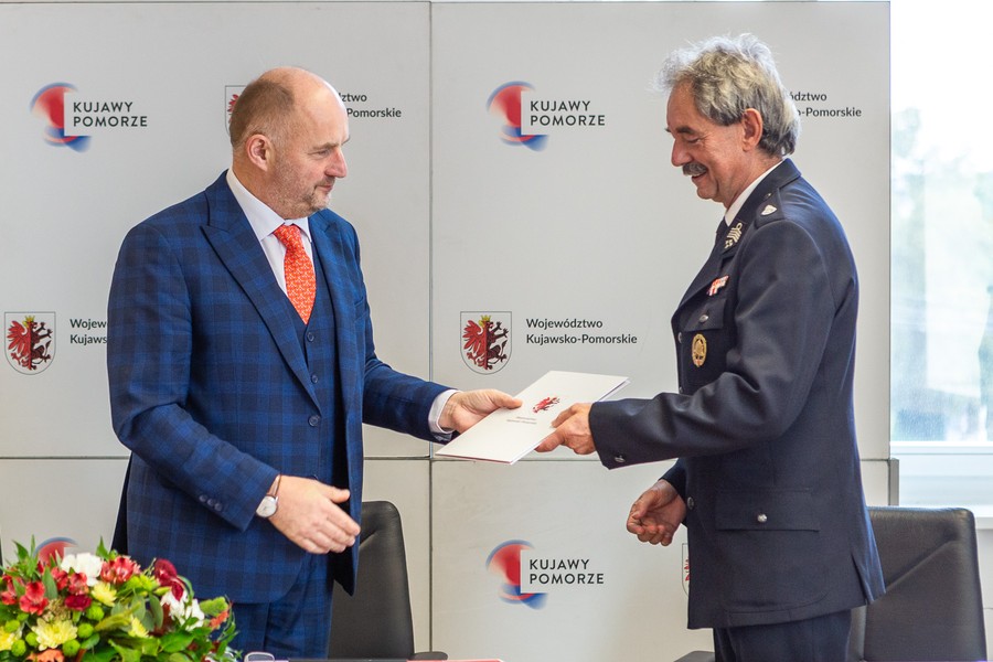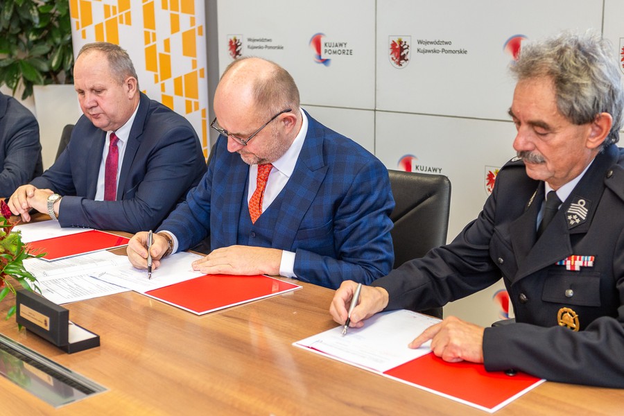 Dwadzieścia dwa samochody ratowniczo-gaśnicze trafią do jednostek ochotniczych straży pożarnych w całym regionie, a mieszkańcy Płonnego i Dulska w powiecie golubsko-dobrzyńskim zyskają bazy edukacji ekologicznej. Wartość obu projektów wynosi ponad 16 mln złotych, z czego blisko 10,5 mln złotych stanowi wsparcie unijne z Regionalnego Programu Operacyjnego Województwa Kujawsko-Pomorskiego na lata 2014-2020. Umowy na dofinansowanie wręczyli w miniony piątek (30 września) marszałek Piotr Całbecki i wicemarszałek Zbigniew Sosnowski.