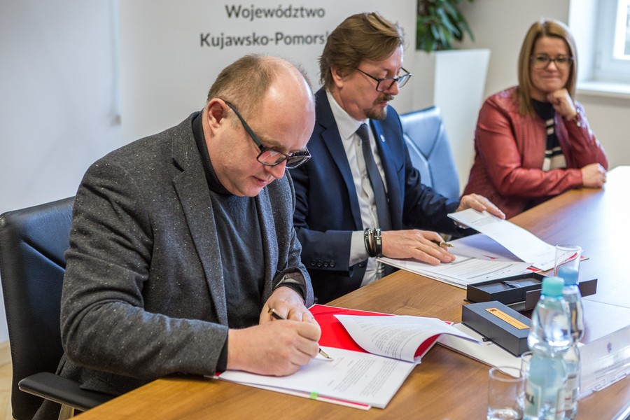 Uczniowie Kujawsko-Pomorskiego Specjalnego Ośrodka Szkolno-Wychowawczego im. Janusza Korczaka w Toruniu będą uczyć się zawodu w nowoczesnych pracowniach. Powstaną też przedszkole dla dzieci ze specjalnymi potrzebami i pierwszy w regionie basen rehabilitacyjny z przeciwprądem i podnośnikiem. Marszałek Piotr Całbecki i prezes firmy KWK Construction Deweloper Waldemar Kapczyński podpisali w piątek (28 lutego) umowę w sprawie przeprowadzenia inwestycji.