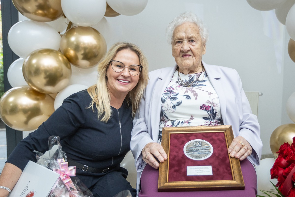 Artystyczna dusza rozmiłowana w poezji i kwiatach Regina Chuchra z Torunia oraz Genowefa Tomkielska, czerpiąca siłę z wiary i modlitwy, świętowały swoje setne urodziny. Obie jubilatki zostały uhonorowane medalem Unitas Durat Cuiaviano-Palatinatus Pomeraniensis. Z tej okazji spotkałą się z nimi wicemarszałek województwa Aneta Jędrzejewska.
