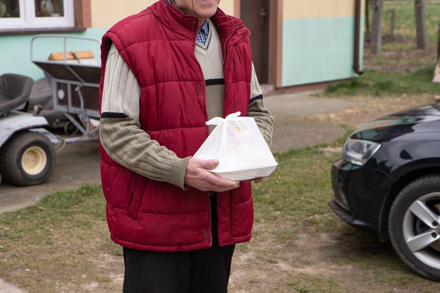Rozwożenie paczek dla seniorów z Górzna, którzy pozostają w domu, fot. Mikołaj Kuras dla UMWKP