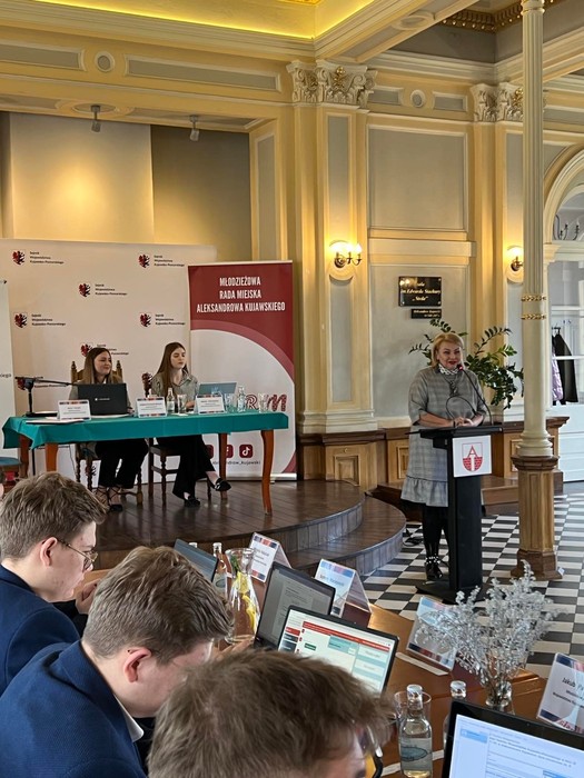 Gości w Aleksandrowie Kujawskim przywitał Kacper Wieczorkowski, przewodniczący Młodzieżowej Rady Aleksandrowa Kujawskiego, a jednocześnie członek Młodzieżowego Sejmiku naszego województwa, który był inicjatorem zorganizowania sesji w swoim mieście. Młodych radnych i pozostałych uczestników obrad przywitali też gospodarze miasta – burmistrz Aleksandrowa Arkadiusz Gralak, który przypomniał, że sam przed laty był najmłodszym radnym miejskim i pełnił funkcję opiekuna lokalnej młodzieżowej rady, oraz przewodnicząca Rady Miasta Aleksandrowa Kujawskiego Lidia Kulpa.