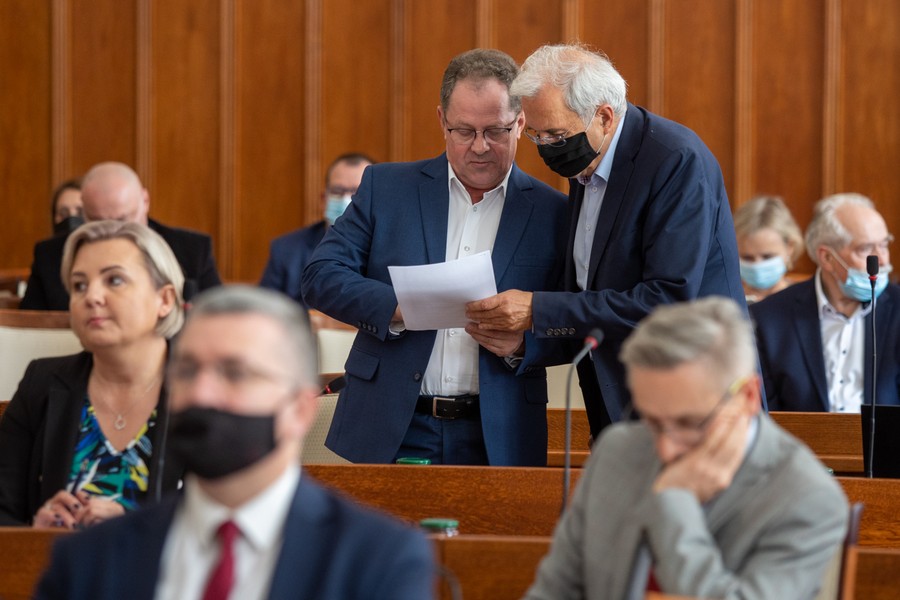 Dyrektor Zarządu Dróg Wojewódzkich Przemysław Dąbrowski i dyrektor Departamentu Infrastruktury Drogowej w Urzędzie Marszałkowskim Mirosław Graczyk w imieniu zarządu województwa przedstawili informację o stanie realizacji inwestycji drogowych. W dyskusji radni pytali o opóźnienia w realizacji niektórych inwestycji. Wicemarszałek Zbigniew Sosnowski zapewnił, że robimy wszystko, by do takich sytuacji nie dochodziło, ale problemem są braki na rynku niektórych materiałów budowlanych, a także postępujący wzrost cen.