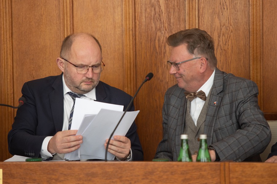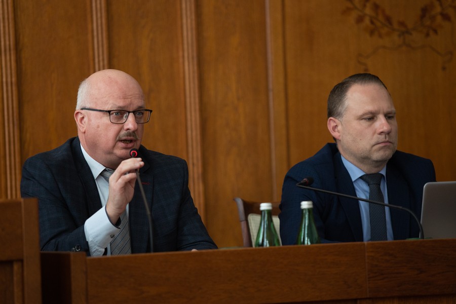 Sytuacja kadrowa Wojewódzkiego Szpitala Specjalistycznego we Włocławku i związana z tym konieczność zawieszenia pracy niektórych oddziałów oraz sygnały o złej atmosferze w tej placówce były tematem debaty, na którą zaproszono dyrektora lecznicy Karolinę Welkę. Marszałek Piotr Całbecki podkreślił, że konieczność zawieszenia oddziałów nie wynika z zaniedbań, ale z tego, że personel musiał wykorzystać zaległe urlopy, by po prostu odpocząć. Obsady są bowiem tak minimalne, że urlopowa nieobecność choćby jednej tylko osoby sprawia, iż nie da się ułożyć dyżurów i normalnej pracy. W takiej sytuacji zasadne staje się pytanie o bezpieczeństwo pacjentów, na które odpowiedź może być tylko jedna: utrzymywanie oddziałów byłoby w tych warunkach nieodpowiedzialne i w konsekwencji groźne. Przeprowadzona wśród personelu ankieta nie potwierdziła pojawiających się publicznie zarzutów o złe zarządzanie szpitalem i niewłaściwą komunikację z pracownikami. Gospodarz województwa dodał, że kryzys kadrowy w służbie zdrowia to problem ogólnopolski. W celu pozyskania lekarzy dla Włocławka w najbliższym czasie uruchomimy program stypendiów fundowanych dla studentów medycyny i lekarzy rezydentów. Także rozpoczęta właśnie duża inwestycja modernizacyjna powinna zachęcać medyków do związania się z tym ośrodkiem.