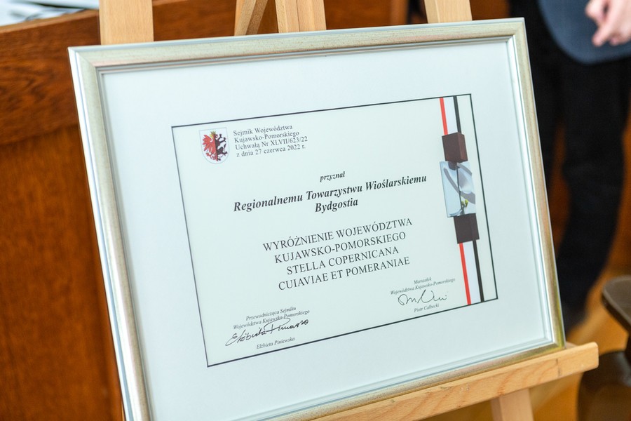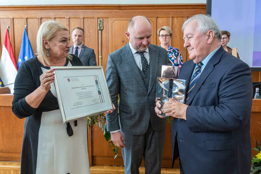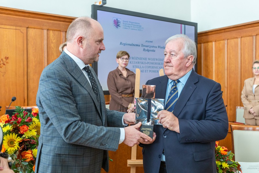 Podczas poniedziałkowych (26 września) obrad honorowy prezes Regionalnego Towarzystwa Wioślarskiego Lotto Bydgostia Zygfryd Żurawski odebrał nadaną mu Odznakę Honorową za Zasługi dla Województwa Kujawsko-Pomorskiego oraz przyznaną klubowi statuetkę Stella Copernicana Cuiaviae et Pomeraniae. Srebrnym medalem Unitas Durat Palatinatus Cuiaviano-Pomeraniensis wyróżniony został dr Tomasz Wojciekiewicz, współzałożyciel i długoletni prezes wydawnictwa prasowego, który zbudował silne marki największych dzienników informacyjnych w województwie „Expressu Bydgoskiego” i „Dziennika Toruńskiego Nowości”. Zatwierdzone przez radnych województwa zmiany w budżecie województwa umożliwią rozstrzygnięcie przetargu na wieloletnią obsługę regionalnych pasażerskich przewozów kolejowych w segmencie dotyczącym połączeń na liniach niezelektryfikowanych.