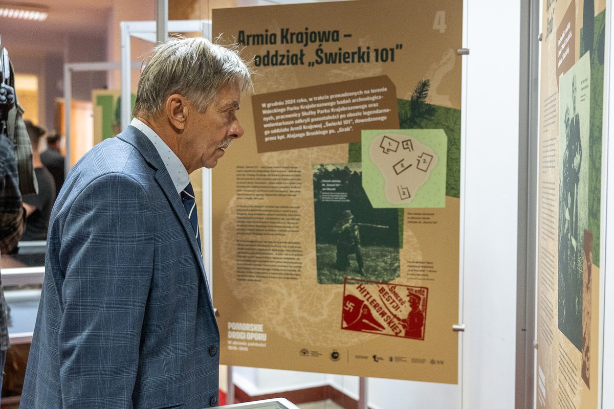 Marszałek Piotr Całbecki, wicemarszałek Zbigniew Ostrowski, członek zarządu województwa Marek Wojtkowski i przewodnicząca sejmiku województwa Elżbieta Piniewska wzięli w poniedziałek (25 sierpnia) udział w otwarciu wystawy „Pomorskie drogi oporu. W obronie polskości 1939-1945”. Ekspozycja prezentuje odkrycia związane z działalnością Armii Krajowej na Pomorzu i ukazuje unikalne pamiątki – osobiste przedmioty oraz wojskowe wyposażenie partyzantów oddziału „Świerki 101”, który w 1944 roku stacjonował na terenie dzisiejszego Wdeckiego Parku Krajobrazowego.