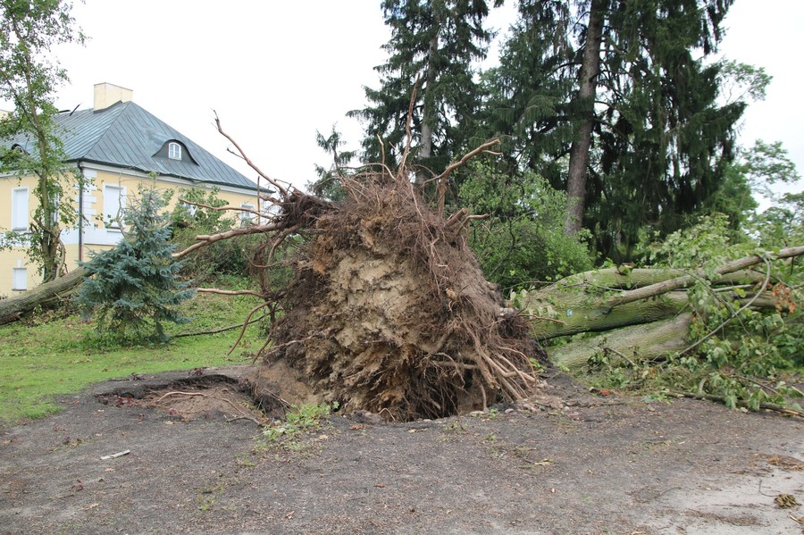 Ewakuowane ze swoich domów rodziny, zerwane dachy, wyrwane z korzeniami i połamane drzewa, lokalne podtopienia, zniszczone drogi – tak wygląda sytuacja w pięciu najbardziej dotkniętych przez sierpniowe nawałnice powiatach naszego województwa. Marszałek Piotr Całbecki, który w środę i czwartek wizytował tereny objęte największymi zniszczeniami, zapowiedział m.in. wsparcie na obudowę domów dla szczególnie poszkodowanych.