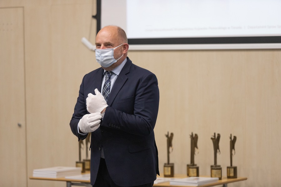 -Ten rok jest w naszym województwie poświęcony Wandzie Błeńskiej, lekarce urodzonej, co prawda w Poznaniu, ale związanej również z Toruniem, gdzie przez lata pracowała w Szpitalu Miejskim. Pani Wanda to jedyna Polka, która otrzymała Honorowe Obywatelstwo Ugandy, kraju w którym z niczego zbudowała szpital dla trędowatych i przez lata służyła potrzebującym. Również teraz, w czasie pandemii, obok serca potrzebny jest profesjonalizm jakim się wykazywała. Połączenie tych dwóch cech umożliwia efekt jakim mogą się poszczycić osoby nagrodzone w konkursie – powiedział marszałek Piotr Całbecki, który wręczył uczestnikom uroczystości książki poświęcone „Matce trędowatych”.