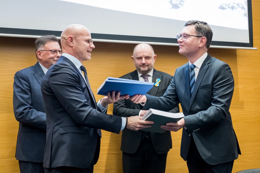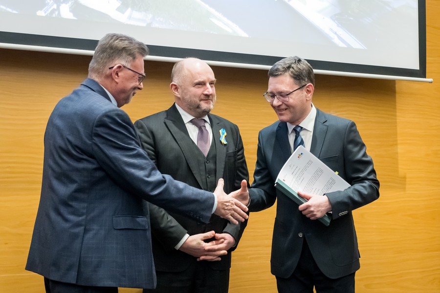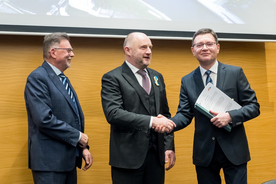 Opera Nova będzie miała czwarty krąg! W obecności marszałka Piotra Całbeckiego, przewodniczącej sejmiku województwa Elżbiety Piniewskiej, wicemarszałka Zbigniewa Ostrowskiego, radnych województwa Romana Jasiakiewicza i Konstantego Dombrowicza oraz prezydenta Bydgoszczy Rafała Bruskiego dyrektor placówki Maciej Figas podpisał w czwartek (12 stycznia) umowę z wykonawcą inwestycji, warszawską firmą Budimex. Kosztami przedsięwzięcia (114 mln złotych) dzielą się samorząd województwa i samorząd miejski Bydgoszczy, oddanie obiektu do użytku wiosną 2025.