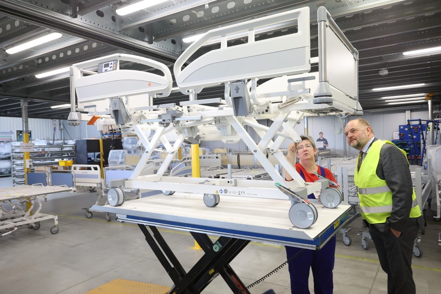 Działająca w Stolnie spółka Stiegelmeyer należy do operującej na światowym rynku mebli medycznych niemieckiej Grupy Stiegelmeyer z centralą w Herford w Nadrenii Północnej -Westfalii. Produkuje wysokiej jakości meble szpitalne i takie, które ułatwiają opiekę nad osobami przewlekle chorymi. Marszałek Piotr Całbecki zwiedził linię produkcyjną, halę testową i budowę nowej hali.