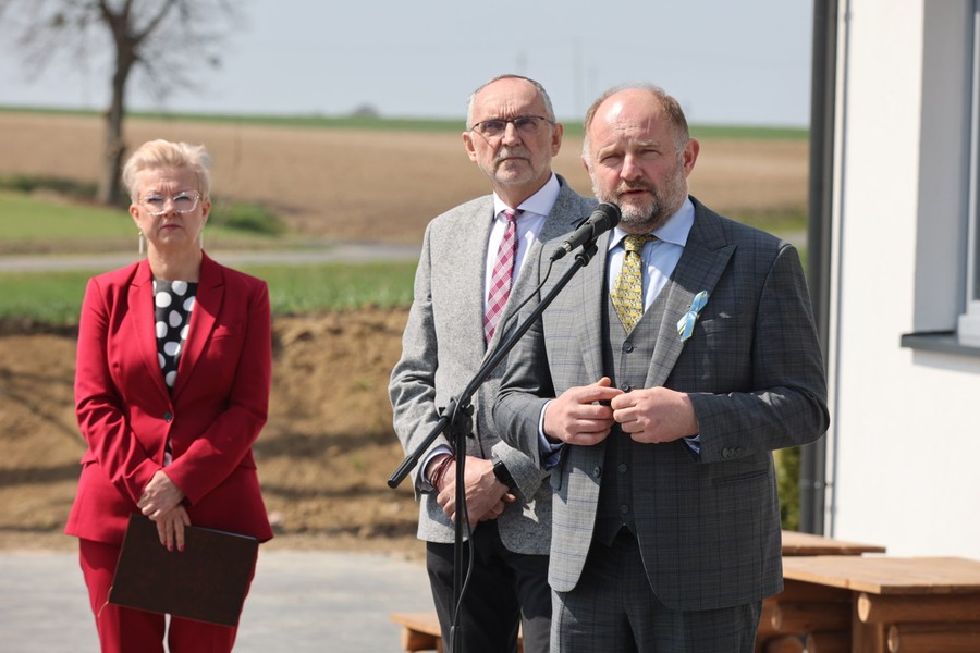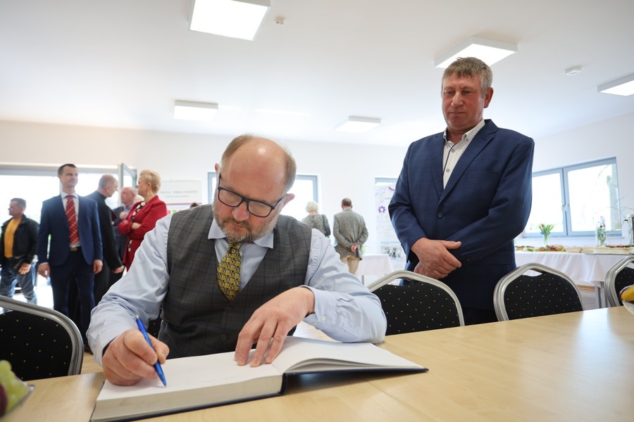 – Kilkaset zatrudnionych tu osób pracuje w światowych standardach bezpieczeństwa pracy, wkrótce dołączy do nich kilkuset nowych pracowników. Jeśli szukać kierunków rozwoju naszego województwa, to jeden z nich może symbolizować to miejsce, gdzie dokonała się transformacja w zgodzie z zasadą zrównoważonego rozwoju. Chylę czoła przed władzami gminy, które mądrze planują jej rozwój. Gmina nie zatraciła charakteru rolniczego, w dużej mierze sielskiego, a jednocześnie mamy tu enklawę przemysłową zatrudniającą pół tysiąca osób. To jest przykład jak można wykorzystać potencjał – stwierdził w rozmowie z dziennikarzami marszałek Piotr Całbecki.