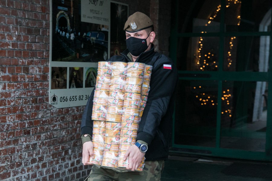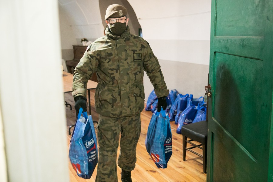 Przekazane w poniedziałek żołnierzom Wojsk Obrony Terytorialnej produkty posłużyły do przygotowania 100 świątecznych paczek dla kombatantów w naszym regionie. Obok słodyczy i produktów żywnościowych w paczkach znalazły się maseczki.