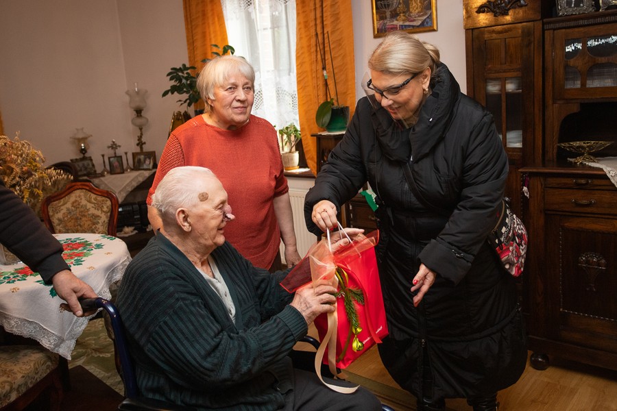 Bożonarodzeniowe upominki i życzenia otrzymali także stuletni i starsi mieszkańcy naszego województwa, uhonorowani marszałkowskim medalem Unitas Durat Palatinatus Cuiaviano-Pomeraniensis. Łącznie do seniorów trafiło 80 pakunków.