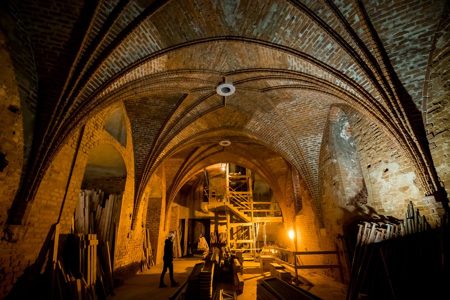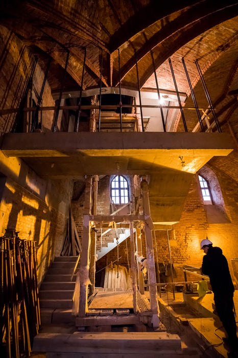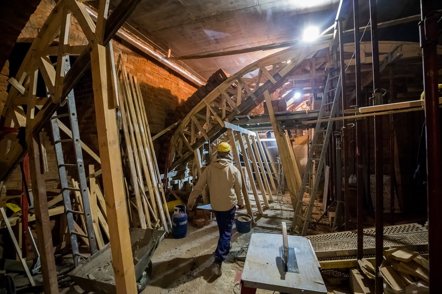 Gruntowne prace budowlane obejmujące m.in. remont piwnic, utworzenie klatki schodowej, murowanie dodatkowych ścian i schodów w wieży oraz działania przy instalacji wodno-ściekowej i elektrycznej, uzupełniają prace konserwatorskie.