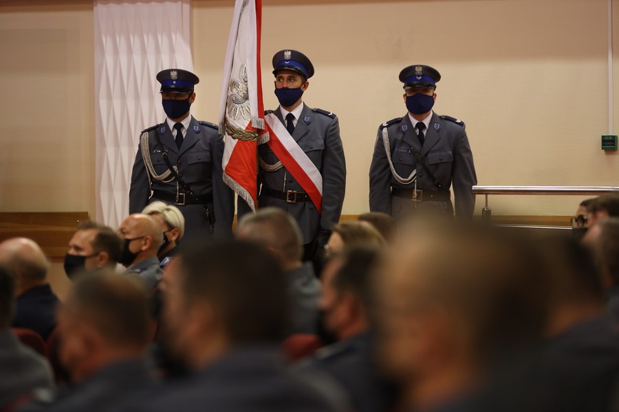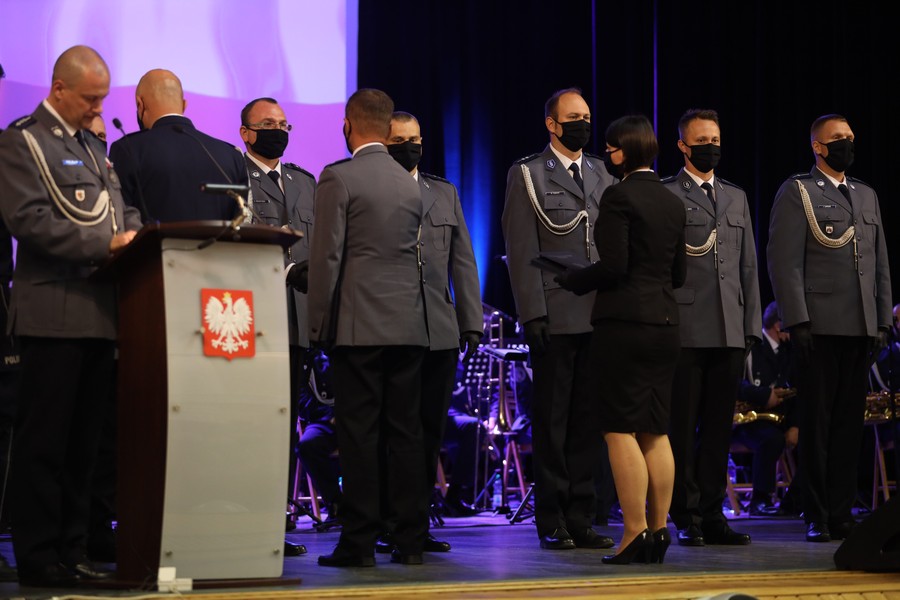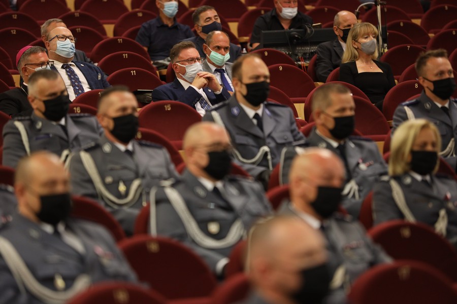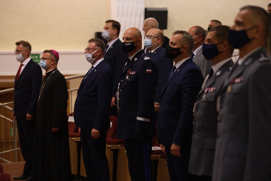 W odbywającej się dziś w sali widowiskowej Kinoteatru Inspektoratu Wsparcia Sił Zbrojnych uroczystości udział wzięli także m.in. wojewoda Mikołaj Bogdanowicz oraz przedstawiciele jednostek policji w naszym województwie. Wydarzeniu towarzyszyło wręczenie medali i odznaczeń oraz aktów mianowania na wyższe stopnie służbowe. Odbył się także koncert Orkiestry Reprezentacyjnej Policji. Spotkanie poprzedziła msza święta w katedrze pw. św. Marcina i Mikołaja.