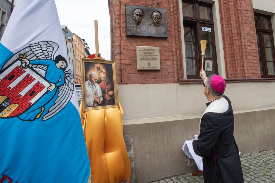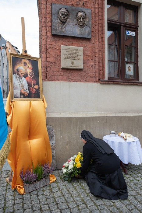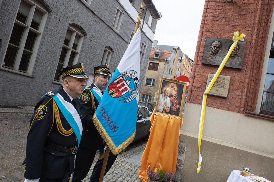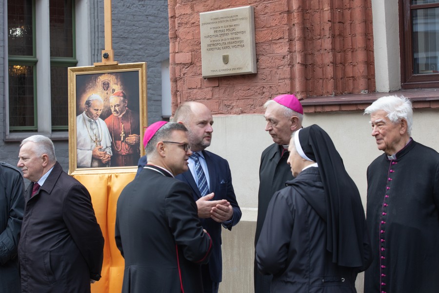 O sylwetkach Papieża Polaka i Prymasa Tysiąclecia uczestnikom spotkania opowiedział profesor Waldemar Rozynkowski, a wspólnego odsłonięcia tablicy dokonali marszałek Piotr Całbecki, biskup ordynariusz diecezji toruńskiej Wiesław Śmigiel, który poświęcił pamiątkową płytę, oraz siostra Katarzyna Pawlak, przełożona toruńskiej prowincji sióstr elżbietanek, inicjatorek powstania upamiętnienia. Zgromadzeni wspólnie odśpiewali „Barkę”, ulubioną pieśń papieża Jana Pawła II.