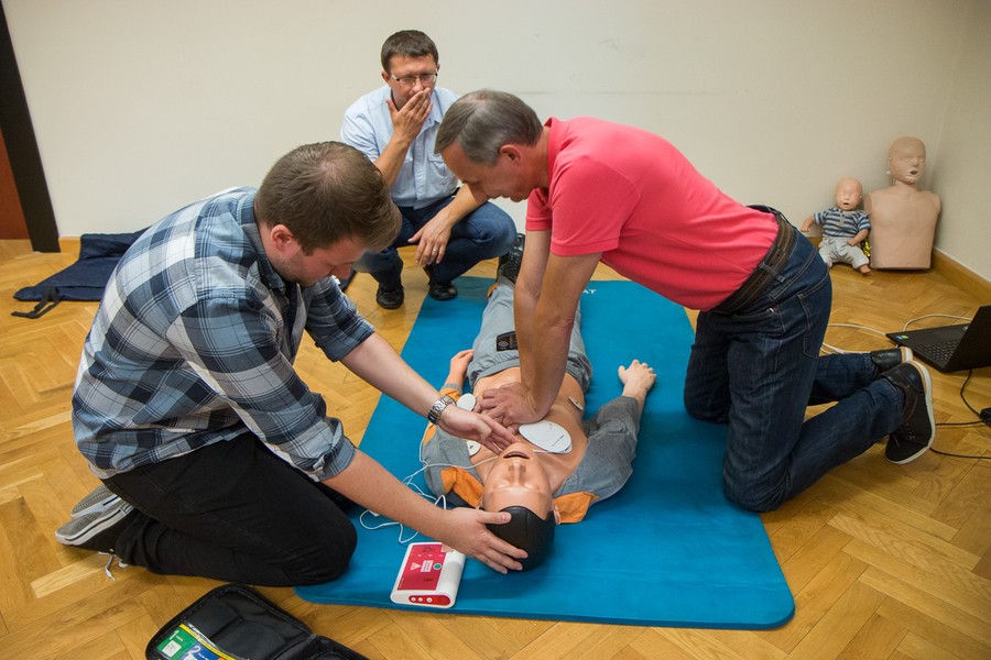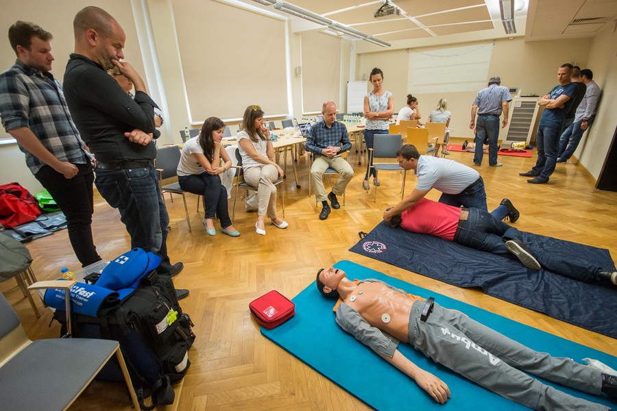 4 i 5 lipca pracownicy Urzędu Marszałkowskiego przeszli kurs z zakresu udzielania pierwszej pomocy przedmedycznej. Zajęcia prowadzili ratownicy medyczni z Wojewódzkiej Stacji Pogotowania Ratunkowego w Bydgoszczy. W programie znalazły się skuteczne postępowanie w przypadkach zatrzymania akcji serca i oddechu oraz w zadławieniach u dorosłych, noworodków i małych dzieci; skuteczne wzywanie pomocy; resuscytacja z użyciem automatycznego defibrylatora.