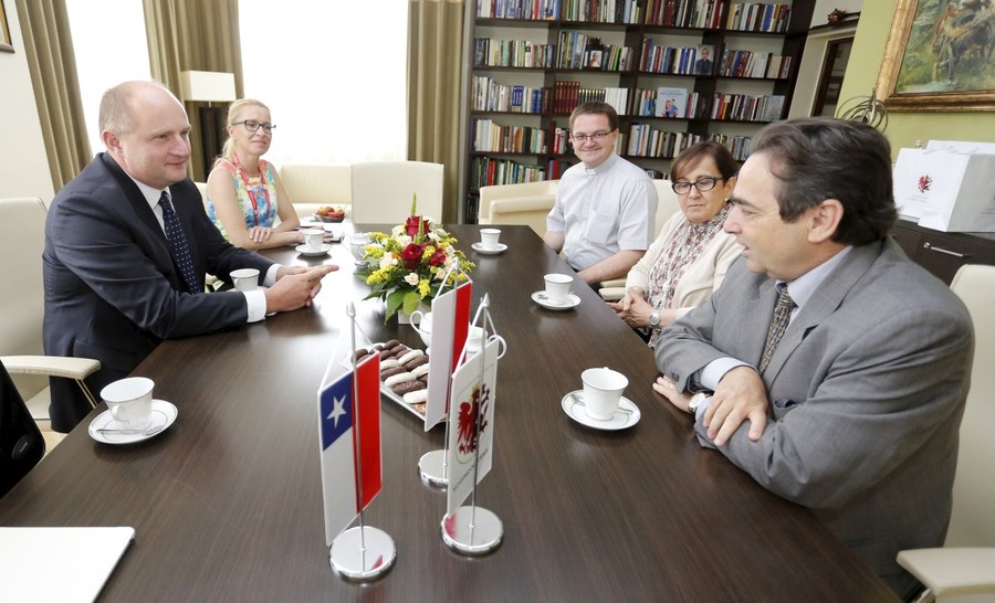 22.07.2016 Wizyta ambasadora Republiki Chile Alfreda Garcíę Castelblanco z małżonką w Toruniu. Wizyta dyplomaty była związana ze Światowymi Dniami Młodzieży. W Kujawsko-Pomorskiem przebywała dwudziestosześcioosobowa grupa młodych pielgrzymów z Chile, Argentyny, Boliwii i Peru, z którymi spotkali się w Urzędzie Marszałkowskim gospodarz województwa i państwo Castelblanco. Tematem oficjalnych rozmów były kwestie związane z możliwą współpracą naszego regionu z jednym z regionów chilijskich, przede wszystkim w dziedzinie wymiany młodzieżowej i edukacji astronomicznej. Fot. Mikołaj Kuras22.07.2016 Wizyta ambasadora Republiki Chile Alfreda Garcíę Castelblanco z małżonką w Toruniu. Wizyta dyplomaty była związana ze Światowymi Dniami Młodzieży. W Kujawsko-Pomorskiem przebywała dwudziestosześcioosobowa grupa młodych pielgrzymów z Chile, Argentyny, Boliwii i Peru, z którymi spotkali się w Urzędzie Marszałkowskim gospodarz województwa i państwo Castelblanco. Tematem oficjalnych rozmów były kwestie związane z możliwą współpracą naszego regionu z jednym z regionów chilijskich, przede wszystkim w dziedzinie wymiany młodzieżowej i edukacji astronomicznej. Fot. Mikołaj Kuras22.07.2016 Wizyta ambasadora Republiki Chile Alfreda Garcíę Castelblanco z małżonką w Toruniu. Wizyta dyplomaty była związana ze Światowymi Dniami Młodzieży. W Kujawsko-Pomorskiem przebywała dwudziestosześcioosobowa grupa młodych pielgrzymów z Chile, Argentyny, Boliwii i Peru, z którymi spotkali się w Urzędzie Marszałkowskim gospodarz województwa i państwo Castelblanco. Tematem oficjalnych rozmów były kwestie związane z możliwą współpracą naszego regionu z jednym z regionów chilijskich, przede wszystkim w dziedzinie wymiany młodzieżowej i edukacji astronomicznej. Fot. Mikołaj Kuras22.07.2016 Wizyta ambasadora Republiki Chile Alfreda Garcíę Castelblanco z małżonką w Toruniu. Wizyta dyplomaty była związana ze Światowymi Dniami Młodzieży. W Kujawsko-Pomorskiem przebywała dwudziestosześcioosobowa grupa młodych pielgrzymów z Chile, Argentyny, Boliwii i Peru, z którymi spotkali się w Urzędzie Marszałkowskim gospodarz województwa i państwo Castelblanco. Tematem oficjalnych rozmów były kwestie związane z możliwą współpracą naszego regionu z jednym z regionów chilijskich, przede wszystkim w dziedzinie wymiany młodzieżowej i edukacji astronomicznej. Fot. Mikołaj Kuras22.07.2016 Wizyta ambasadora Republiki Chile Alfreda Garcíę Castelblanco z małżonką w Toruniu. Wizyta dyplomaty była związana ze Światowymi Dniami Młodzieży. W Kujawsko-Pomorskiem przebywała dwudziestosześcioosobowa grupa młodych pielgrzymów z Chile, Argentyny, Boliwii i Peru, z którymi spotkali się w Urzędzie Marszałkowskim gospodarz województwa i państwo Castelblanco. Tematem oficjalnych rozmów były kwestie związane z możliwą współpracą naszego regionu z jednym z regionów chilijskich, przede wszystkim w dziedzinie wymiany młodzieżowej i edukacji astronomicznej. Fot. Mikołaj Kuras22.07.2016 Wizyta ambasadora Republiki Chile Alfreda Garcíę Castelblanco z małżonką w Toruniu. Wizyta dyplomaty była związana ze Światowymi Dniami Młodzieży. W Kujawsko-Pomorskiem przebywała dwudziestosześcioosobowa grupa młodych pielgrzymów z Chile, Argentyny, Boliwii i Peru, z którymi spotkali się w Urzędzie Marszałkowskim gospodarz województwa i państwo Castelblanco. Tematem oficjalnych rozmów były kwestie związane z możliwą współpracą naszego regionu z jednym z regionów chilijskich, przede wszystkim w dziedzinie wymiany młodzieżowej i edukacji astronomicznej. Fot. Mikołaj Kuras22.07.2016 Wizyta ambasadora Republiki Chile Alfreda Garcíę Castelblanco z małżonką w Toruniu. Wizyta dyplomaty była związana ze Światowymi Dniami Młodzieży. W Kujawsko-Pomorskiem przebywała dwudziestosześcioosobowa grupa młodych pielgrzymów z Chile, Argentyny, Boliwii i Peru, z którymi spotkali się w Urzędzie Marszałkowskim gospodarz województwa i państwo Castelblanco. Tematem oficjalnych rozmów były kwestie związane z możliwą współpracą naszego regionu z jednym z regionów chilijskich, przede wszystkim w dziedzinie wymiany młodzieżowej i edukacji astronomicznej. Fot. Mikołaj Kuras22.07.2016 Wizyta ambasadora Republiki Chile Alfreda Garcíę Castelblanco z małżonką w Toruniu. Wizyta dyplomaty była związana ze Światowymi Dniami Młodzieży. W Kujawsko-Pomorskiem przebywała dwudziestosześcioosobowa grupa młodych pielgrzymów z Chile, Argentyny, Boliwii i Peru, z którymi spotkali się w Urzędzie Marszałkowskim gospodarz województwa i państwo Castelblanco. Tematem oficjalnych rozmów były kwestie związane z możliwą współpracą naszego regionu z jednym z regionów chilijskich, przede wszystkim w dziedzinie wymiany młodzieżowej i edukacji astronomicznej. Fot. Mikołaj Kuras22.07.2016 Wizyta ambasadora Republiki Chile Alfreda Garcíę Castelblanco z małżonką w Toruniu. Wizyta dyplomaty była związana ze Światowymi Dniami Młodzieży. W Kujawsko-Pomorskiem przebywała dwudziestosześcioosobowa grupa młodych pielgrzymów z Chile, Argentyny, Boliwii i Peru, z którymi spotkali się w Urzędzie Marszałkowskim gospodarz województwa i państwo Castelblanco. Tematem oficjalnych rozmów były kwestie związane z możliwą współpracą naszego regionu z jednym z regionów chilijskich, przede wszystkim w dziedzinie wymiany młodzieżowej i edukacji astronomicznej. Fot. Mikołaj Kuras22.07.2016 Wizyta ambasadora Republiki Chile Alfreda Garcíę Castelblanco z małżonką w Toruniu. Wizyta dyplomaty była związana ze Światowymi Dniami Młodzieży. W Kujawsko-Pomorskiem przebywała dwudziestosześcioosobowa grupa młodych pielgrzymów z Chile, Argentyny, Boliwii i Peru, z którymi spotkali się w Urzędzie Marszałkowskim gospodarz województwa i państwo Castelblanco. Tematem oficjalnych rozmów
