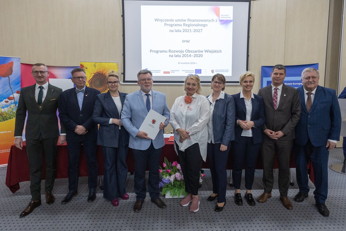 Sześć umów, w ramach naszego programu regionalnego (Fundusze Europejskie dla Kujaw i Pomorza – FEdKP – 2021-2027), dotyczy projektów związanych z poprawą warunków pracy i tworzeniem warunków dla wydłużenia czasu pozostawania na rynku pracy pracowników starszych, a także z poprawą dostępności usług społecznych i wsparcia społecznego. Trzydzieści osiem umów PROW to wsparcie dla nowo powstających firm na wsi oraz na budowę i modernizację zbiorników retencyjnych.