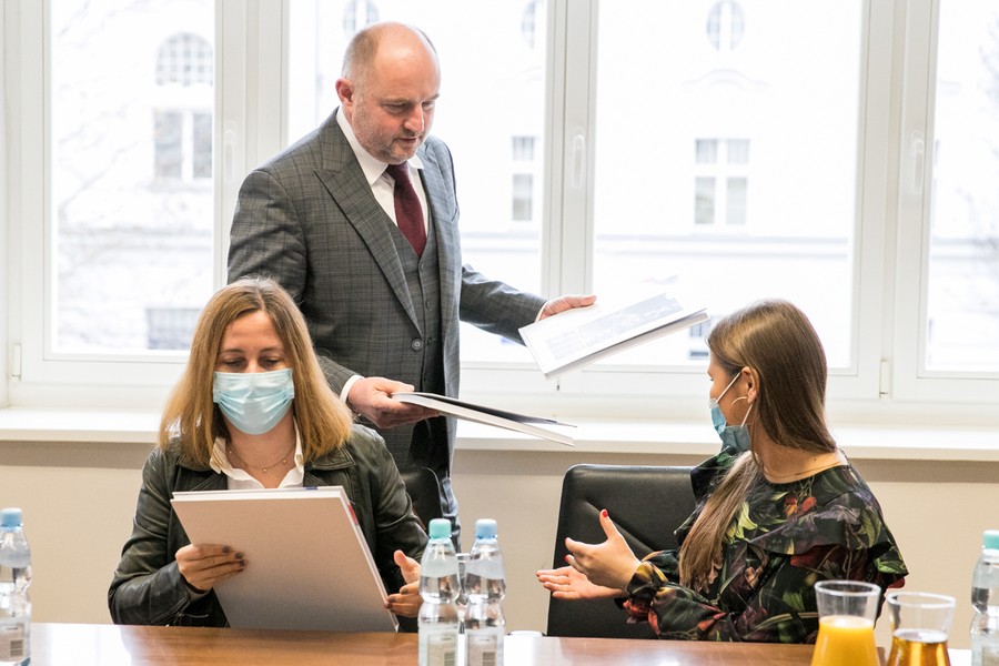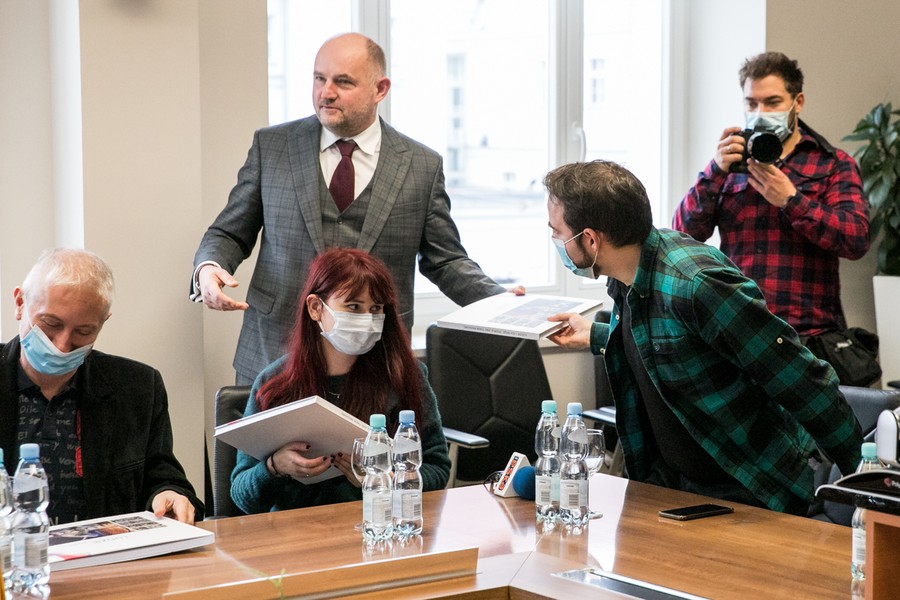 Spotkanie marszałka Piotra Całbeckiego z dziennikarzami z okazji 15-lecia na urzędzie, fot. Andrzej Goiński/UMWKP