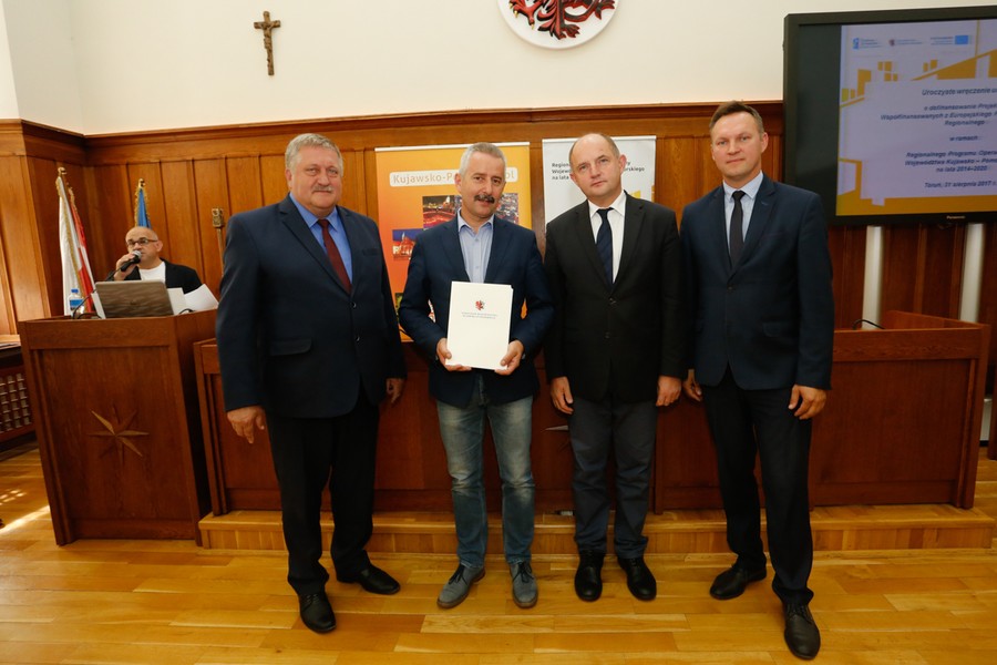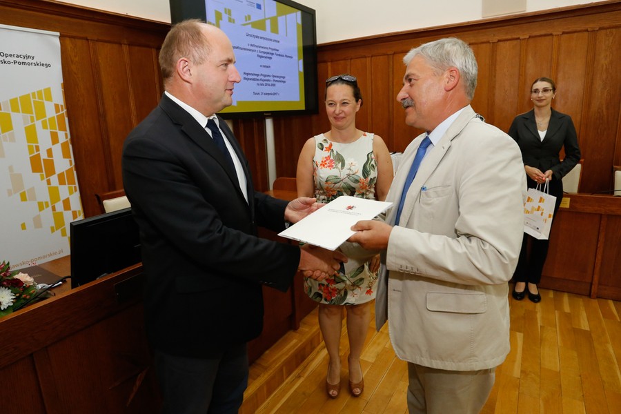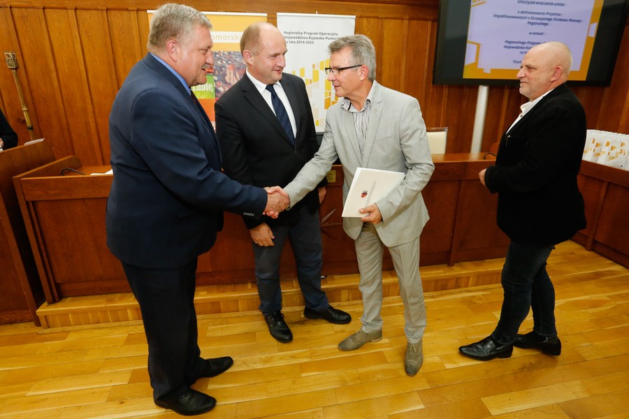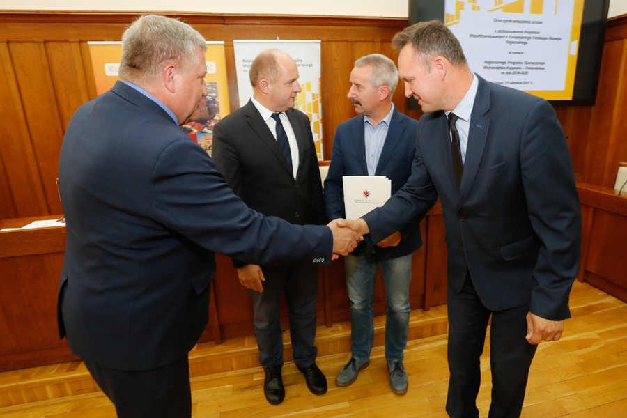Rozbudowa ulicy Ogińskiego w Bydgoszczy oraz dróg lokalnych w powiecie bydgoskim i Tucholi, termomodernizacja szkół, urzędów i innych gmachów użyteczności publicznej oraz budowa kilkunastu domów dla podopiecznych placówek opiekuńczo-wychowawczych w całym regionie. W czwartek (31 sierpnia) w Urzędzie Marszałkowskim odbyła się uroczystość wręczenia umów na dofinansowanie 23 projektów inwestycyjnych w ramach Regionalnego Programu Operacyjnego Województwa Kujawsko-Pomorskiego. Wartość wsparcia to ponad 71 milionów złotych.
