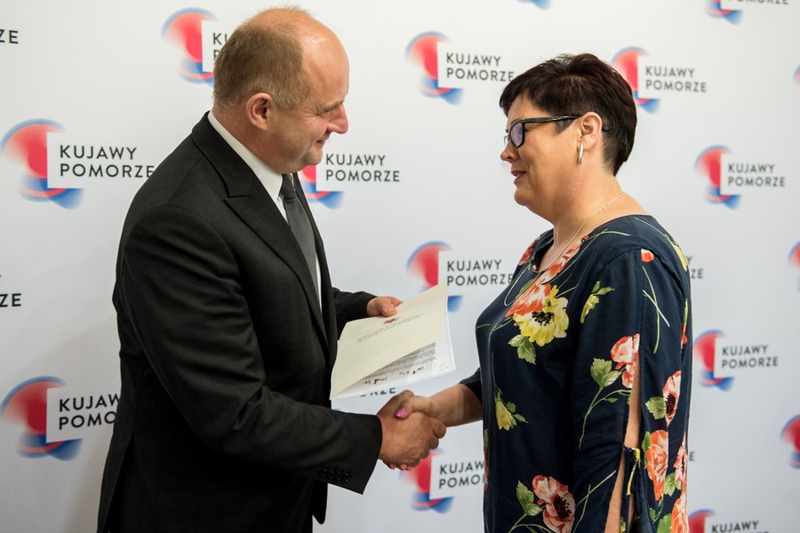 Uzbrojenie terenów inwestycyjnych, montaż instalacji odnawialnych źródeł energii, inwestycje medyczne, projekty edukacyjne, nowe miejsca dla przedszkolaków oraz pomoc dla osób zagrożonych wykluczeniem i wsparcie dla mieszkańców obszarów wiejskich. W czwartek (19 lipca) w Urzędzie Marszałkowskim odbyło się uroczyste wręczenie umów na dofinansowanie 14 projektów ze środków Regionalnego Programu Operacyjnego Województwa Kujawsko-Pomorskiego oraz Programu Rozwoju Obszarów Wiejskich.