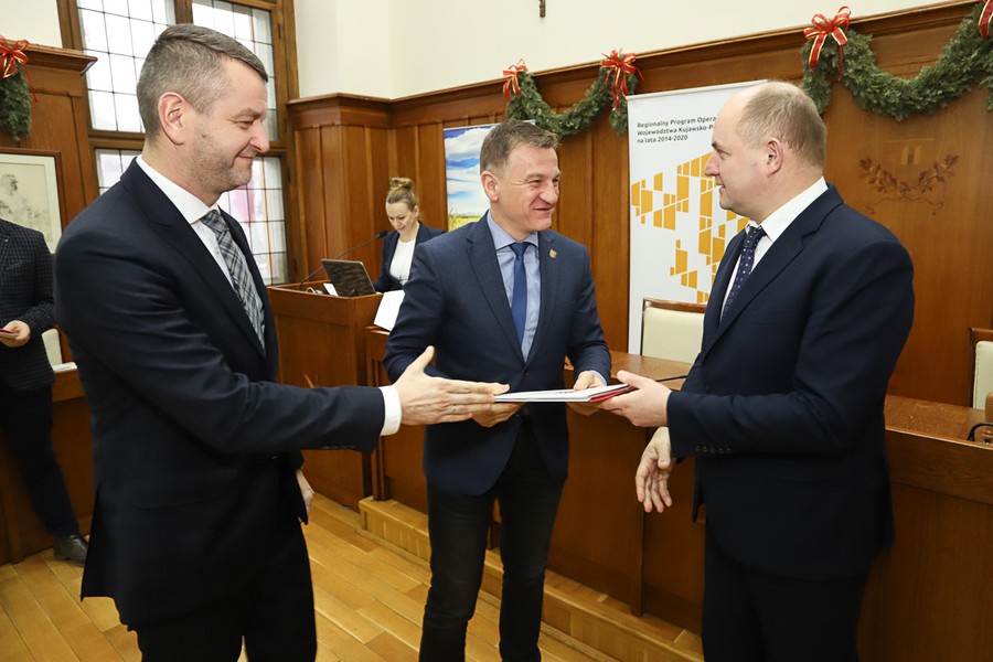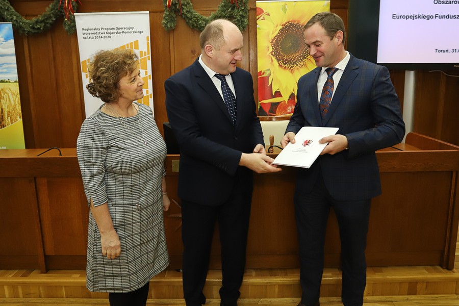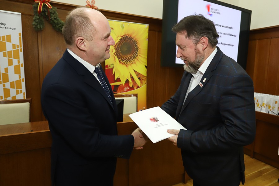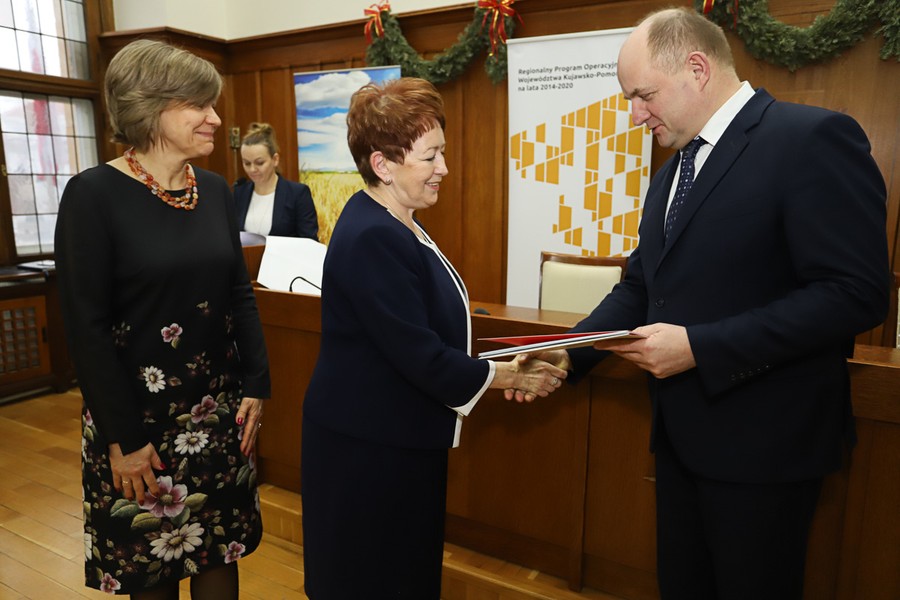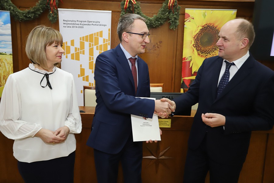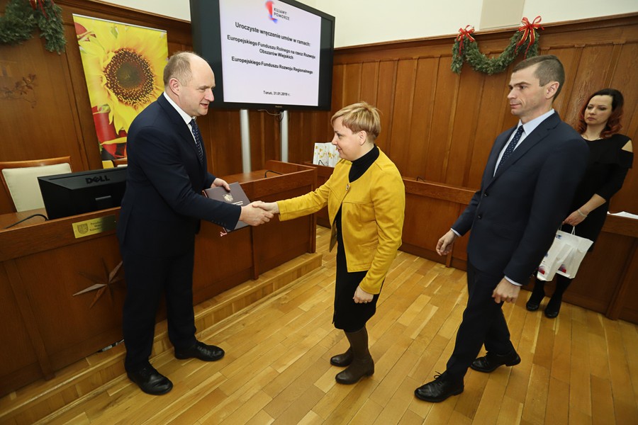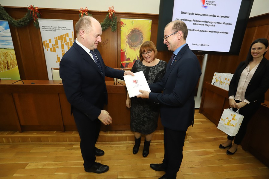 Budowa dróg, rozbudowa gminnych sieci wodno-kanalizacyjnych, rewitalizacja i termomodernizacja budynków, ochrona zabytków, zakupy nowoczesnego wyposażenia dla medycyny i szkół oraz wsparcie na rozwój działalności gospodarczej. W czwartek (31 stycznia) w Urzędzie Marszałkowskim odbyła się uroczystość wręczenia umów o dofinansowanie 24 projektów w ramach Regionalnego Programu Operacyjnego Województwa Kujawsko-Pomorskiego oraz 12 przedsięwzięć w ramach Programu Rozwoju Obszarów Wiejskich.
