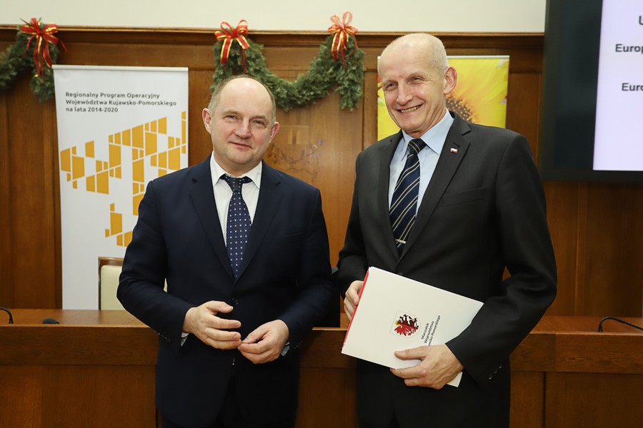 – Bardzo interesujący projekt powstaje w Bydgoszczy. Nazywamy go roboczo fab labem, czyli powierzchnią, z której korzystać będą przedsiębiorstwa, w tym startupy, rozpoczynające działalność i realizujące ciekawy projekt o charakterze badawczym. Klasyczny projekt związany z rozwojem infrastruktury drogowej realizowany będzie w Inowrocławiu – chodzi o długi odcinek drogi, ważnej z punktu widzenia rozwoju gospodarczego oraz funkcjonowania miasta. Cieszą też projekty modernizacji zaplecza szkół zawodowych w Toruniu i Chodczu – mówi marszałek Piotr Całbecki, który wręczył umowy przedstawicielom beneficjentów.