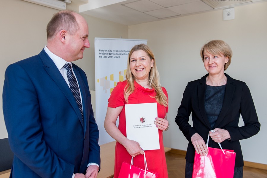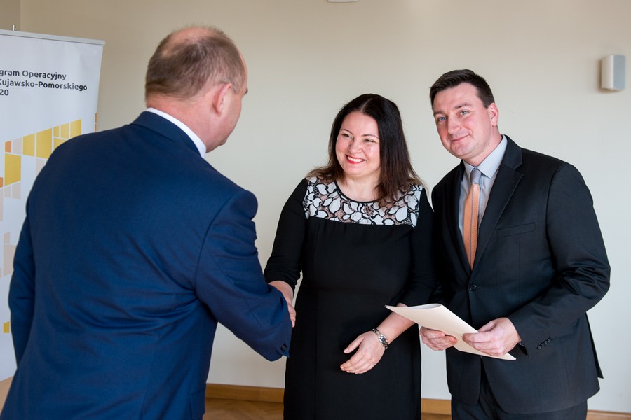 Projekty grantowe związane z rozwojem przedsiębiorczości, pomoc osobom zagrożonym wykluczeniem społecznym w powrocie na rynek pracy, termomodernizacja, a także budowa przedszkola oraz infrastruktury rekreacyjnej w Rypinie i Wąbrzeźnie – w środę (18 kwietnia) w Urzędzie Marszałkowskim odbyło się uroczyste podpisanie umów na dofinansowanie 16 projektów ze środków Regionalnego Programu Operacyjnego Województwa Kujawsko-Pomorskiego oraz Programu Rozwoju Obszarów Wiejskich.