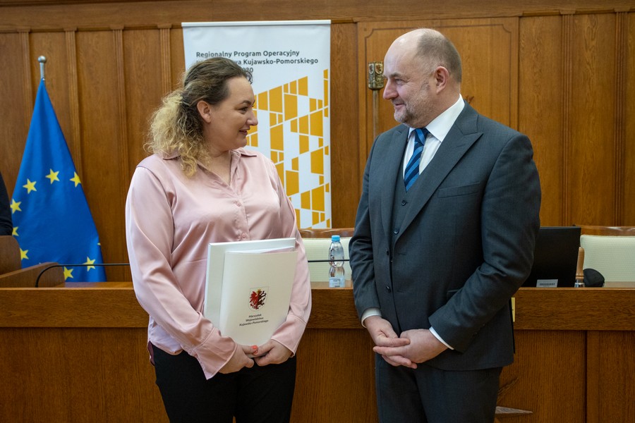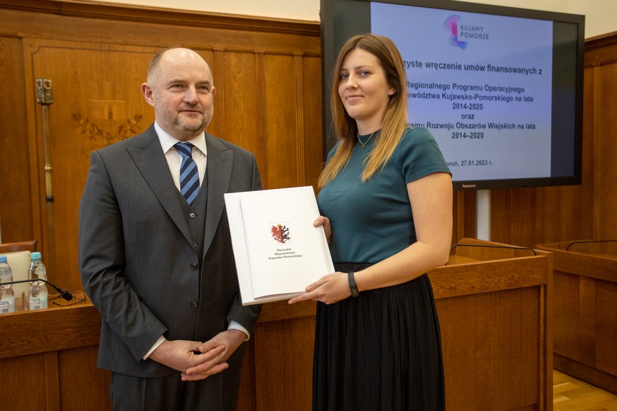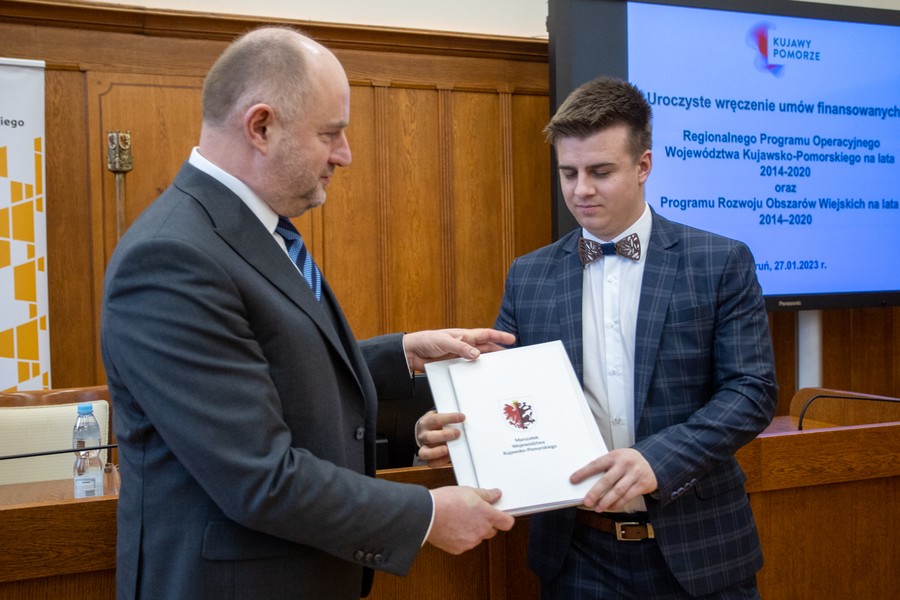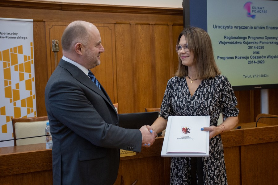 Podczas spotkania wręczono także umowy o dofinansowanie na podjęcie i prowadzenie działalności gospodarczej. Pieniądze z Programu Rozwoju Obszarów Wiejskich (PROW) trafią za pośrednictwem lokalnych grup działania do przedsiębiorców z powiatów: brodnickiego, bydgoskiego, golubsko-dobrzyńskiego, radziejowskiego, rypińskiego, świeckiego i toruńskiego. Pojedyncze wsparcie wyniosło od 50 do 100 tys. zł. Środki z PROW umożliwią także budowę placu zabaw w Sulnówku (powiat świecki), utworzenie ogólnodostępnej przestrzeni rekreacyjnej w Wielkich Radowiskach (powiat wąbrzeski) i rozwój działalności biznesowej firmy z branży spożywczej w powiecie włocławskim. Łączna kwota dofinansowania z PROW to ponad 1,7 mln zł.