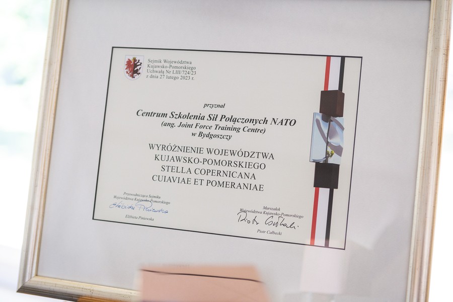 Podczas uroczystości gospodarz województwa złożył na ręce generała brygady, zastępcy dowódcy i szefa sztabu Centrum Szkolenia Sił Połączonych (JFTC) Petra Svobody statuetkę Stella Coprernicana Cuiaviae et Pomeraniae, najważniejsze samorządowe wyróżnienie. O przyznaniu wyróżnienia zadecydowano podczas lutowego posiedzenia sejmiku.