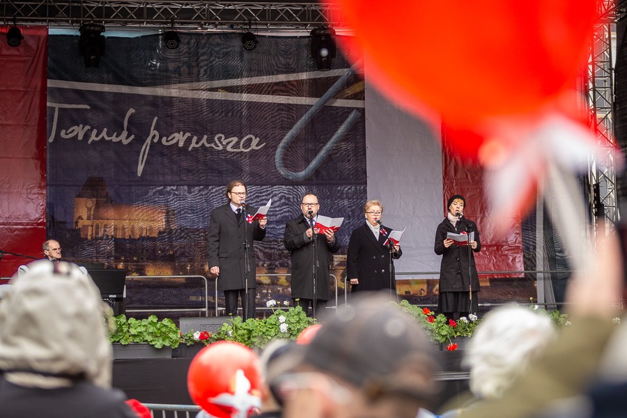 Oficjalne obchody rozpoczęły się w południe polową mszą świętą, której przewodniczył biskup ordynariusz diecezji toruńskiej Wiesław Śmigiel. Po jej zakończeniu odbyły się uroczystości wojskowe z udziałem Chorągwi Husarskiej Województwa Kujawsko-Pomorskiego i pokazem musztry paradnej w wykonaniu toruńskiej orkiestry wojskowej. Ostatnim punktem programu był plenerowy spektakl Teatru Baj Pomorski „Przypadki doktora Bonifacego Trąbki”, propozycja przede wszystkim dla najmłodszych uczestników naszego patriotycznego spotkania.